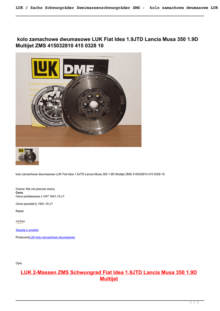 kolo zamachowe dwumasowe LUK Fiat Idea 1.9JTD Lancia Musa