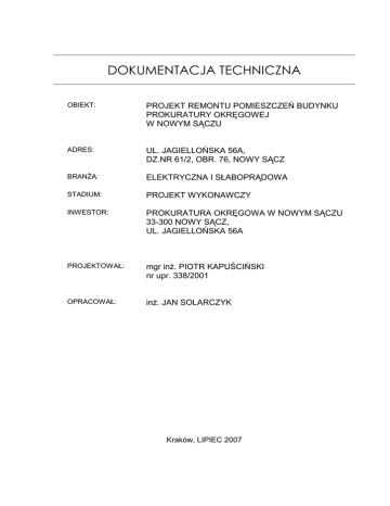dokumentacja techniczna - Prokuratura Okręgowa w Nowym Sączu