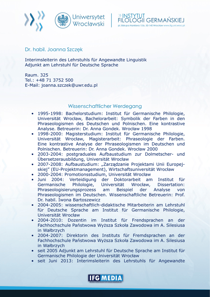 ausführliches biogramm - Instytut Filologii Germańskiej UWr