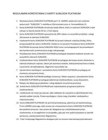 REGULAMIN KORZYSTANIA Z KARTY SUNLOOX PLATINUM