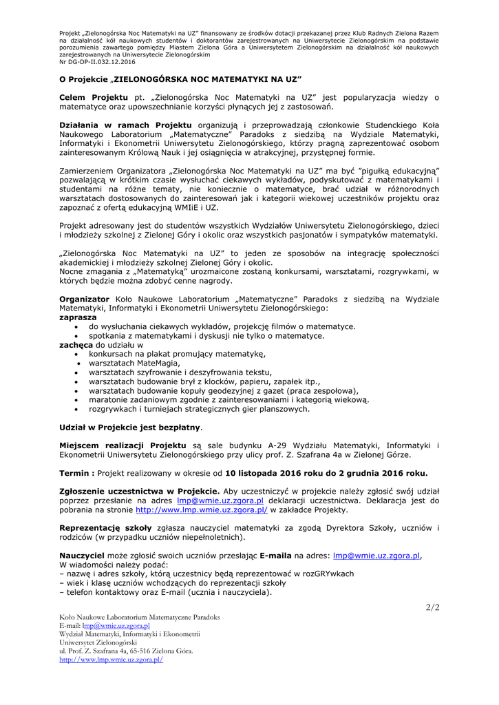 O projekcie - Koło Naukowe Laboratorium "Matematyczne" Paradoks