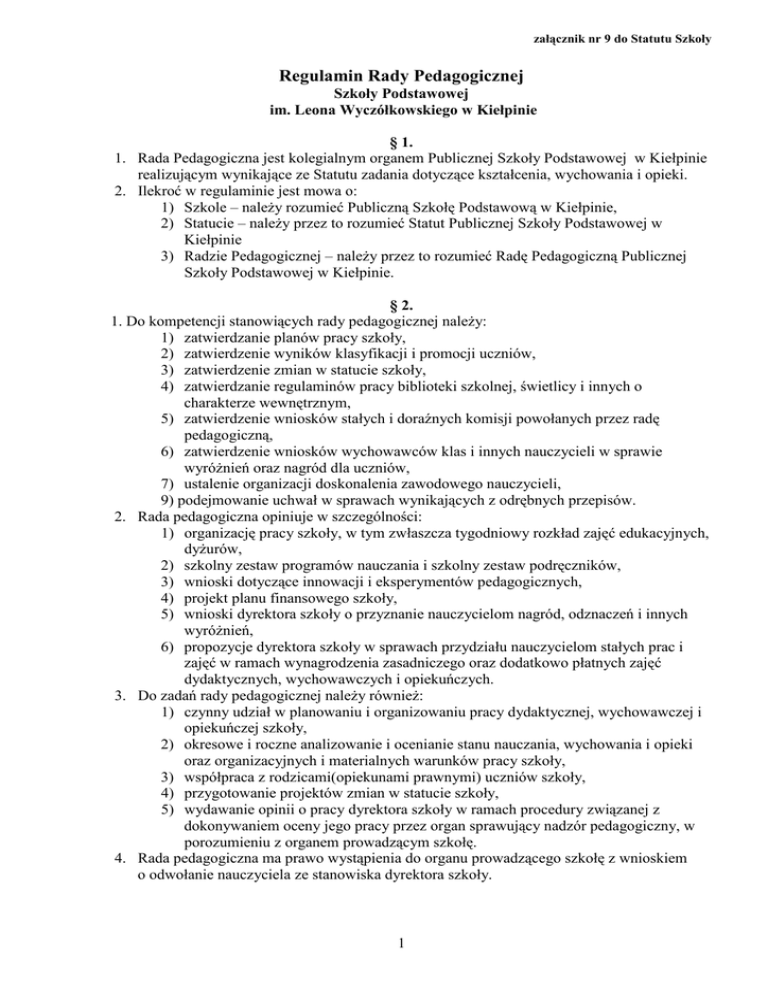 Załącznik nr 9- Regulamin Rady Pedagogicznej