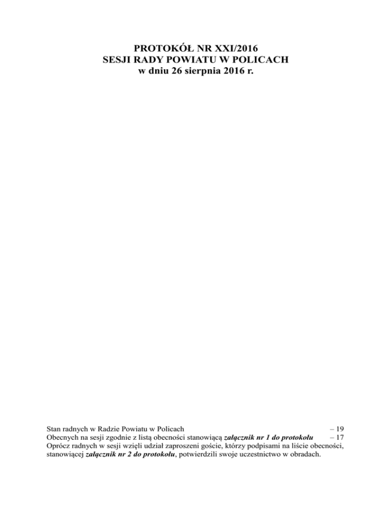 PROTOKÓŁ NR XXI/2016 SESJI RADY POWIATU W POLICACH w