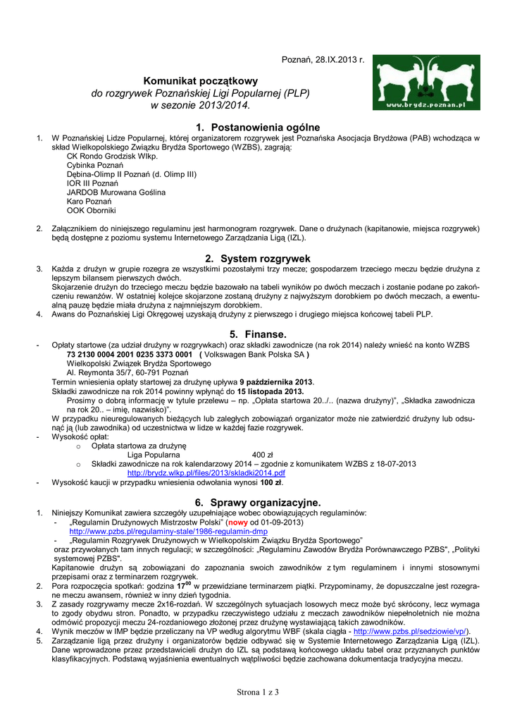 Komunikat początkowy - Poznańska Asocjacja Brydżowa