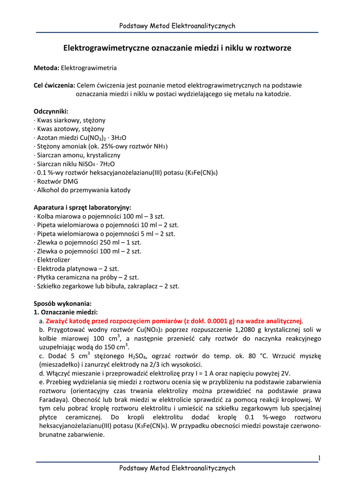 Elektrograwimetryczne oznaczanie miedzi i niklu w roztworze
