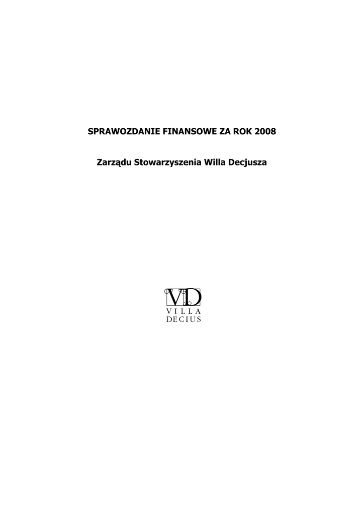 Sprawozdanie finansowe 2008 - Stowarzyszenie Willa Decjusza