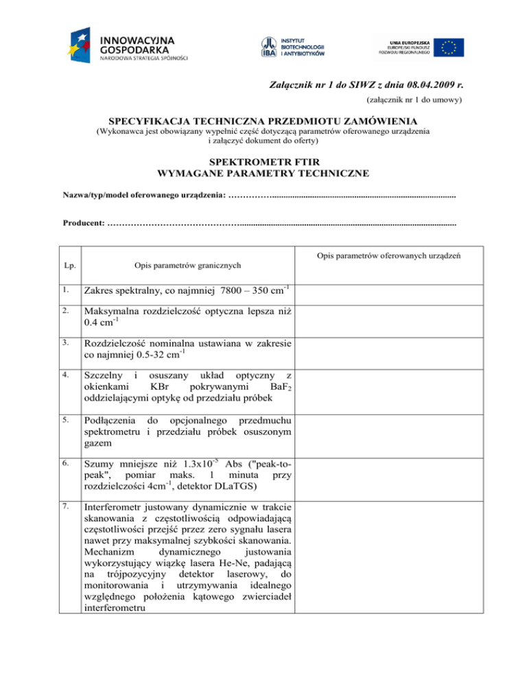 Załącznik nr 1 do SIWZ z dnia 08.04.2009 r.