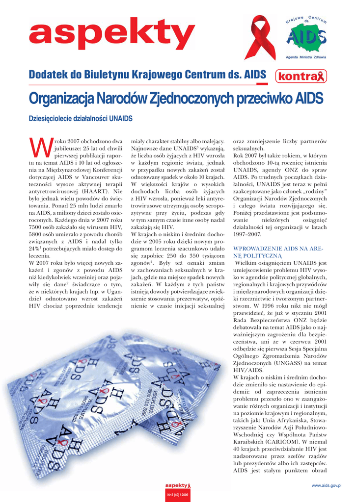 Dodatek do Biuletynu Krajowego Centrum ds. AIDS Organizacja Narodów Zjednoczonych przeciwko AIDS Dziesięciolecie działalności UNAIDS W roku 2007 obchodzono dwa jubileusze: 25 lat od chwili pierwszej publikacji raportu na temat AIDS i 10 lat od ogłoszenia na Międzynarodowej Konferencji dotyczącej AIDS w Vancouver skuteczności wysoce aktywnej terapii antyretrowirusowej (HAART). Nie było jednak wielu powodów do świętowania. Ponad 25 mln ludzi zmarło na AIDS, a miliony dzieci zostało osieroconych. Każdego dnia w 2007 roku 7500 osób zakażało się wirusem HIV, 5800 osób umierało z powodu chorób związanych z AIDS i nadal tylko 24%1 potrzebujących miało dostęp do leczenia. W 2007 roku było więcej nowych zakażeń i zgonów z powodu AIDS niż kiedykolwiek wcześniej oraz pojawiły się dane2 świadczące o tym, że w niektórych krajach (np. w Ugandzie) odnotowano wzrost zakażeń HIV chociaż poprzednie tendencje miały charakter stabilny albo malejący. Najnowsze dane UNAIDS3 wykazują, że liczba osób żyjących z HIV wzrosła w każdym regionie świata, jednak w przypadku nowych zakażeń został odnotowany spadek w około 10 krajach. W większości krajów o wysokich dochodach liczba osób żyjących z HIV wzrosła, ponieważ leki antyretrowirusowe utrzymują osoby seropozytywne przy życiu, podczas gdy w tym samym czasie inne osoby nadal zakażają się HIV. W krajach o niskim i średnim dochodzie w 2005 roku dzięki nowym programom leczenia szacunkowo udało się zapobiec 250 do 350 tysiącom zgonów4. Były też oznaki zmian w zachowaniach seksualnych w krajach, gdzie ma miejsce spadek nowych zakażeń. W każdym z tych państw istnieją dowody potwierdzające zwiększenie stosowania prezerwatyw, opóźnienie w czasie inicjacji seksualnej oraz zmniejszenie liczby partnerów seksualnych. Rok 2007 był także rokiem, w którym obchodzono 10-tą rocznicę istnienia UNAIDS, agendy ONZ do spraw AIDS. Po trudnych początkach działalności, UNAIDS jest teraz w pełni zaakceptowane jako członek „rodziny” Organizacji Narodów Zjednoczonych i całego świata rozwijającego się. Poniżej przedstawione jest podsumowanie niektórych osiągnięć działalności tej organizacji w latach 1997–2007. WPROWADZENIE AIDS NA ARENĘ POLITYCZNĄ Wielkim osiągnięciem UNAIDS jest umiejscowienie problemu HIV wysoko w agendzie politycznej globalnych, regionalnych i krajowych przywódców i międzynarodowych organizacji dzięki rzecznictwie i tworzonym partnerstwom. W 1996 roku nikt nie mógł przewidzieć, że już w styczniu 2001 Rada Bezpieczeństwa ONZ będzie debatowała na temat AIDS jako o najważniejszym zagrożeniu dla bezpieczeństwa, ani że w czerwcu 2001 odbędzie się pierwsza Sesja Specjalna Ogólnego Zgromadzenia Narodów Zjednoczonych (UNGASS) na temat HIV/AIDS. W krajach o niskim i średnim dochodzie zmieniło się nastawienie do epidemii: od zaprzeczenia istnieniu problemu przeszło ono w zaangażowanie różnych organizacji i instytucji na poziomie krajowym i regionalnym, takich jak: Unia Afrykańska, Stowarzyszenie Narodów Azji PołudniowoWschodniej czy Wspólnota Państw Karaibskich (CARICOM). W niemal 40 krajach przeciwdziałanie HIV jest nadzorowane przez szefów rządów lub prezydentów albo ich zastępców. AIDS jest stałym punktem obrad www.aids.gov.pl (36) / 2009 2008 Nr 2 (40) 2 Grupy Ośmiu (G8), Światowego Forum Gospodarczego i innych organizacji tej samej rangi. Ponad 200 firm międzynarodowych jest członkami Globalnej Koalicji Biznesu przeciwko HIV/AIDS, Gruźlicy i Malarii (GBC) oraz wiele związków zawodowych na całym świecie jest aktywnie zaangażowanych w walkę. W krajach bogatych darczyńcy o wiele bardziej angażują się w prace w zakresie HIV. UNAIDS nie zamierza twierdzić, że osiągnął to wyłącznie własnym wysiłkiem. Agenda współpracuje z różnymi partnerami – z osobami żyjącymi z HIV, różnymi organizacjami pozarządowymi (od niewielkich organizacji społecznych po potężne organizacje międzynarodowe), z sektorem prywatnym, organizacjami religijnymi, fundacjami prowadzonymi przez miliarderów i byłych szefów państw oraz wieloma znanymi twarzami show-biznesu. ZWIĘKSZENIE ŚRODKÓW NA PRZECIWDZIAŁANIE AIDS Co polityczne zaangażowanie oznacza w praktyce? Przede wszystkim doprowadziło do ogromnego wzrostu środków przeznaczonych na walkę z AIDS. Między 1996 a 2007 rokiem finansowanie programów w zakresie HIV w krajach o niskim i średnim dochodzie zwiększyło się ponad 30-krot- nie – z niecałych 300 milionów dolarów w 1996 roku do 8,9 miliardów. „The Economist” napisał: „Mimo zaangażowania innych czynników, nie będzie dużą nadinterpretacją historii stwierdzenie, że UNGASS odegrała dużą rolę w poprawie sytuacji… Prędkość, z jaką pieniądze są przekazywane na AIDS (ze wszystkich źródeł, w tym z krajów najbardziej dotkniętych epidemią, jak również od podatników z bogatego świata) znacznie wzrosła w 2001 roku”5. Jak zauważył dr Peter Piot6, to był rzadki przykład rzeczywiście spełnionej obietnicy Zgromadzenia Ogólnego. Złożono obietnicę, aby uzbierać 7–10 mld USD do 2005 r. i, jak się okazało w 2005 r., zebrano 8,3 miliardów dolarów. Wiele krajów rozwijających się zwiększyło własne krajowe fundusze na programy przeciwdziałania epidemii, pomimo ograniczonych zasobów; jedna trzecia obecnych wydatków na AIDS pochodzi z budżetów krajowych i prywatnych dotacji w tych krajach. Pozostałe dwie trzecie pochodzą z pomocy dwustronnej oraz wielostronnej. W nieco ponad trzy lata Globalny Fundusz Walki z AIDS, Gruźlicą i Malarią wypłacił odbiorcom grantów 2,26 miliarda dolarów7. Znaczącym darczyńcą jest Program PEPFAR (President's Emergency Plan for AIDS Relief), który do 2007 roku wypłacił łącznie 8,4 miliarda dolarów i stanowi około połowę wszystkich dwustronnych wydatków na AIDS. PEPFAR w swojej pracy polega na danych UNAID