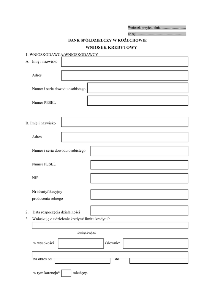 Wniosek o kredyt