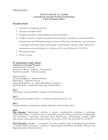 Protokół Nr 33/2011 z posiedzenia Zarządu