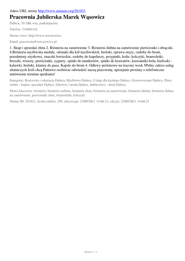 Pracownia Jubilerska Marek Wasowicz, Debica