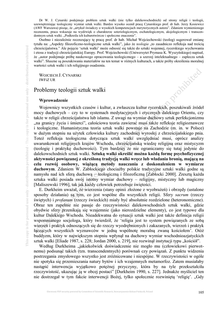 Wojciech J. Cynarski Problemy teologii sztuk walki