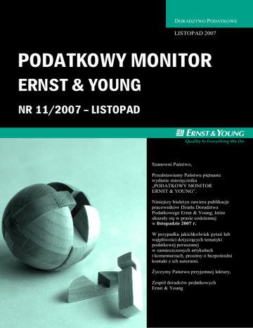 DORADZTWO PODATKOWE LISTOPAD 2007 PODATKOWY MONITOR ERNST & YOUNG NR 11/2007 – LISTOPAD Ernst & Young Szanowni Państwo, Przedstawiamy Państwu piętnaste wydanie miesięcznika „PODATKOWY MONITOR ERNST & YOUNG”. Niniejszy biuletyn zawiera publikacje pracowników Działu Doradztwa Podatkowego Ernst & Young, które ukazały się w prasie codziennej w listopadzie 2007 r. W przypadku jakichkolwiek pytań lub wątpliwości dotyczących tematyki podatkowej poruszanej w zamieszczonych artykułach i komentarzach, prosimy o bezpośredni kontakt z ich autorami. Życzymy Państwu przyjemnej lektury, Zespół doradców podatkowych Ernst & Young DORADZTWO PODATKOWE Spis treści Sprzedając dom, uważaj na 19-proc. podatek........................................................................3 Jak zagraniczne firmy mogą odzyskać VAT zapłacony w Polsce..........................................4 Od umowy pożyczki trzeba zapłacić PCC.............................................................................5 Każdy pakiet to przychód .....................................................................................................8 URS nie pasują do policji finansowej ................................................................................. 11 Kłopotliwy VAT od usług finansowych.............................................................................. 12 Warto uchwalić gotowy projekt ustawy o VAT .................................................................. 14 W restauracjach może być drożej ....................................................................................... 16 NSA Akcyza na olej opałowy do Trybunału ....................................................................... 17 Spokojnie, rąk do pracy nie brakuje.................................................................................... 18 Dzięki zmianom podatnicy mogą zaoszczędzić kilkaset złotych ......................................... 20 UE zmieni VAT od usług finansowych............................................................................... 23 Firmy zbyt długo czekają na porozumienia cenowe ............................................................ 24 Korekta deklaracji po kontroli to sukces skarbówki ............................................................ 27 Jak postępować przy wpłacie podatku, gdy nie składa się deklaracji ................................... 28 Opłaty leasingowe można traktować jak należności licencyjne ........................................... 30 VAT do zapłaty od złotówki............................................................................................... 32 Czasem lepiej nie pytać fiskusa o zdanie ............................................................................ 34 Reforma VAT możliwa nawet za parę miesięcy ................................................................. 35 Fiskus chce korekty przy aportach, chociaż to niezgodne z dyrektywą................................ 37 Najważniejsze, aby wreszcie rząd i jego reprezentanci w terenie zaczęli choć trochę ufać przedsiębiorcom ................................................................................................................. 40 Polscy przedsiębiorcy też domagają się zachęt ................................................................... 41 LISTOPAD 2007 – PODATKOWY MONITOR ERNST & YOUNG 2 DORADZTWO PODATKOWE Sprzedając dom, uważaj na 19proc. podatek Kupiłem ziemię z myślą o budowie własnego jednorodzinnego domu. Żeby na niego zarobić, postanowiłem część działki sprzedać, budując na niej wcześniej dom w stanie surowym. Teraz okazuje się, że ewentualnym zyskiem będę się musiał podzielić z urzędem skarbowym. Czy nie ma sposobu na to, aby nie płacić 19-proc. podatku dochodowego od różnicy między poniesionymi kosztami a potencjalnym zarobkiem? Czy to naprawdę jedyny wydatek, na jaki muszę być przygotowany? Zasady opodatkowania sprzedaży nieruchomości na gruncie podatku dochodowego od osób fizycznych zostały zmienione na początku bieżącego roku. Roman Namysłowski, menedżer w Dziale Doradztwa Podatkowego Ernst & Young, Rzeczpospolita z dn. 03.11.2007 Do końca 2006 r. przychód uzyskany ze sprzedaży podlegał co do zasady opodatkowaniu według stawki zryczałtowanej, w wysokości 10 proc. Zasada ta obowiązywała, jeżeli nieruchomość została sprzedana przed upływem pięciu lat od końca roku, w którym była kupiona lub wybudowana. Dokonanie tej transakcji przed upływem tego okresu nie zawsze wiązało się z koniecznością zapłaty podatku. Przepisy ustawy o podatku dochodowym od osób fizycznych (PIT) przewidywały bowiem zwolnienie od opodatkowania osiągniętych w ten sposób przychodów. Działo się tak m.in. jeżeli środki uzyskane ze sprzedaży nieruchomości były - nie później jednak niż w ciągu dwóch lat od dnia sprzedaży - wydatkowane na budowę własnego budynku mieszkalnego. Osoba dokonująca takiej transakcji była zobowiązana w terminie 14 dni, licząc od dnia tej sprzedaży, złożyć w swoim urzędzie skarbowym oświadczenie, że przychód uzyskany ze sprzedaży nieruchomości przeznaczy właśnie na wspomniany cel. Od 1 stycznia 2007 roku obowiązują już jednak inne reguły. Zlikwidowane zostało ryczałtowe opodatkowanie przychodu osiągniętego ze sprzedaży nieruchomości, a w zamian wprowadzono 19-proc. podatek. Opodatkowaniu tą stawką podlega dochód uzyskany z transakcji, czyli przychód pomniejszony o poniesione koszty związane z tą nieruchomością. Niestety, uchylono również zwolnienie z opodatkowania w sytuacji, w której podatnik przeznaczył otrzymane środki na zaspokojenie własnych potrzeb mieszkaniowych, czyli na przykład budowę innego domu, czy zakup lokalu mieszkalnego. W konsekwencji niezależnie od tego, w jaki sposób wykorzystamy środki uzyskane ze sprzedaży, i tak musimy zapłacić 19-proc. podatek z tytuł