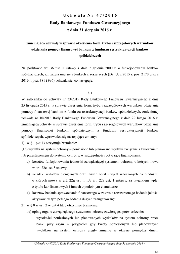 Uchwała Rady BFG nr 47/2016 z dnia 31 sierpnia 2016 r.