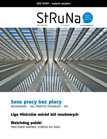 Duże tematy – wydanie specjalne ISSN 2299-3088 Nr 2 (3) 2013 Sens pracy bez płacy wolontariat – tak, praktyki studenckie – nie Liga Mistrzów wśród kół naukowych Watchdog polski twój dobry partner, którego nie znasz www.struna.edu.pl StRuNa – Biuletyn Młodych Naukowców StRuNa – Young Scientists Journal ISSN 2299-3088 niezależne ogólnopolskie czasopismo informacyjno-naukowe © Copyright by Fundusz Pomocy Studentom, Warszawa 2012, 2013 © Copyright by Authors, Warszawa 2013 [email protected] redakcja nr 2 (3) 2013 Adriana Bartnik (zastępczyni redaktora naczelnego) nakład: 1540 egz. Bożena Bednarczyk opracowanie graficzne: Antoni Frontczak Maria Golińska rozwiązania informatyczne: Kamil Łucznik Anna Książkowska (redakcja językowa, szefowa działu korekty) zdjęcia: Ewa Przedpełska, Piotr Wilhelmi, SXC Tomasz Lewiński (zastępca redaktora naczelnego, szef działu prawnego) Marcin Łączyński Numer przygotowany w ramach zadania zleconego Robert Pawłowski (redaktor naczelny) Ministerstwa Nauki i Szkolnictwa Wyższego pod nazwą Dominika Rafalska (pierwsza zastępczyni redaktora naczelnego) StRuNa III – Najważniejsze osiągnięcia ruchu naukowego Paweł Strawiński studentów i doktorantów. Redakcja nie ponosi odpowiedzialności za treść www.struna.edu.pl materiałów przesłanych jej do publikacji przez autorów Wspólna strona dla przedsięwzięć realizowanych projektów naukowych. Redakcja nie zwraca materiałów w ramach programu StRuNa, w tym: niezamówionych. Redakcja zastrzega sobie prawo dokonywania zmian i skrótów. – bazy danych StRuNa zawierającej informacje o organizacjach studentów i doktorantów posiadających cele naukowe oraz o realizowanych wydawca Fundacja „Fundusz Pomocy Studentom” KRS 0000305179 NIP 701-01-23-771 ul. Krakowskie Przedmieście 24/108 przez nie projektach, – konkursu StRuNa w kategoriach Projekt Roku, Koło Naukowe Roku, Opiekun Roku, Publikacja Roku, Konferencja Roku, Wyprawa Roku, – czasopisma „StRuNa – Biuletynu Młodych Naukowców”. 00-927 Warszawa StRuNa w sieci również na: [email protected] http://www.facebook.com/StudenckiRuchNaukowyStRuNa www.pomocstudentom.pl http://www.facebook.com/FunduszPomocyStudentom 2 Rada programowa czasopisma „StRuNa” prof. dr hab. Katarzyna Chałasińska-Macukow prof. dr hab. Andrzej Zoll prof. dr hab. Mirosław Duchowski prof. dr hab. Katarzyna Żukrowska prof. dr hab. Małgorzata Fuszara dr hab. Urszula Jarecka, profesor UW prof. dr hab. Piotr Garstecki dr hab. Janusz Knorowski, profesor ASP prof. dr hab. Mirosław Handke dr hab. Andrzej Kraszewski, profesor PW prof. dr hab. Zbigniew Judycki dr hab. Grzegorz Leszczyński, profesor UW prof. dr hab. inż. Waldemar Kaczmarek dr hab. n. med. Grzegorz Madycki prof. dr hab. Elżbieta Kaczyńska dr hab. Janusz Majcherek, profesor UP prof. dr hab. Marta Kicińska-Habior dr hab. Krystyna Ostrowska, profesor UW prof. dr hab. Wiesław Krajka dr hab. inż. Janusz Piechna, profesor PW prof. dr hab. Marcin Król dr hab. Monika Płatek, profesor UW prof. dr hab. Jacek Kurczewski dr hab. Arkady Rzegocki prof. dr hab. Zbigniew Marciniak dr hab. inż. kpt. ż. w. Adam Weintrit, profesor AM prof. dr hab. Alojzy Nowak dr hab. Waldemar Zubrzycki, profesor WSPol prof. dr hab. Wojciech Pluskiewicz ks. dr hab. Władysław Zuziak, profesor UPJPII prof. dr hab. Krystyna Pyrzyńska dr Magdalena Biesaga prof. Jerzy Stuhr dr Agata Fijalkowski prof. dr hab. Bogusław Śliwerski dr Aneta Gawkowska prof. dr hab. Łukasz Turski dr Anna Krajewska prof. dr hab. Marek Wąsowicz dr Magdalena Sobolewska prof. dr hab. inż. Władysław Wieczorek dr Joanna Śmigielska prof. dr hab. Wiesław Władyka dr János Tischler prof. dr hab. Tadeusz Wolsza dr Marzena Trybull-Piotrowska prof. dr hab. Leszek Zasztowt StRuNa nr 2 (3) 2013 3 Spis treści 5 6 20 22 24 28 32 OBYWATELSKI MONITORING Watchdogi w Polsce Ryszard Skrzypiec Amnesty International Weronika Rokicka Panoptykon Anna Obem Court Watch Polska Filip A. Gołębiewski Polskie Towarzystwo Prawa Antydyskryminacyjnego Krzysztof Śmiszek Sieć Obywatelska – Watchdog Polska Krzysztof Izdebski 35 KODEKS DOBRYCH STUDENCKICH PRAKTYK 42 Wolontariat w instytucjach kultury a jego zaplecze ideowe i ryzyko wyzysku SOCJOLOGIA Marta Sienkiewicz 56 58 ELEMENTARZ MŁODEGO NAUKOWCA Nauka o przypadkach Anna Olga Polanowska Autor i właściciel Adriana Bartnik, Tomasz Lewiński 61 62 73 Nagrodzeni 2013 76 Kierunek zmian w badaniach nad interpretacją PARADA ZWYCIĘZCÓW Liga Mistrzów 2011-2013 HERMENEUTYKA Monika Murawska www.struna.edu.pl Obywatelski monitoring „Trzeba bronić społeczeństwa” – głosił Michel Foucault w latach 70. ubiegłego stulecia. Ten postulat realizują dziś watchdogi, zwane również organizacjami obywatelskiego nad zoru lub strażniczymi. Ich działalność jest wciąż mało rozpro pagowana, dlatego postanowiliśmy poświęcić im pierwszą część tego wydania czasopisma „StRuNa”. Watchdogi to ważna grupa organizacji pozarządowych, które monitorują przestrzeganie praw jednostek i całych społeczeństw oraz sposób dystrybucji pieniędzy publicznych. W ich szeregach spotkać można głównie studentów, doktorantów i absolwentów uczelni. Na kolejnych stronach przedstawiamy panoramę polskich organizacji watchdogowych oraz pięć przykładów obywatelskiego nadzoru opisanych przez osoby bezpośrednio go realizujące. Jeżeli nie zawsze akceptujesz to, co się robi w imieniu społe czeństwa i za publiczne pieniądze, pomyśl o współpracy z watch dogami. Jeżeli chcesz zdobyć dodatkowe informacje o tych orga nizacjach lub kontakty do nich, napisz na adres: [email protected]. 6 Watchdogi w Polsce Rzecz o genezie, celach, zasadach i sposobach działania strażników praw jednostek i zbiorowości Ryszard Skrzypiec Organizacje strażnicze nadzorują działania władz publicznych, przedsiębiorstw i organizacji pozarządowych oraz dążą do zmiany sposobu funkcjonowania t