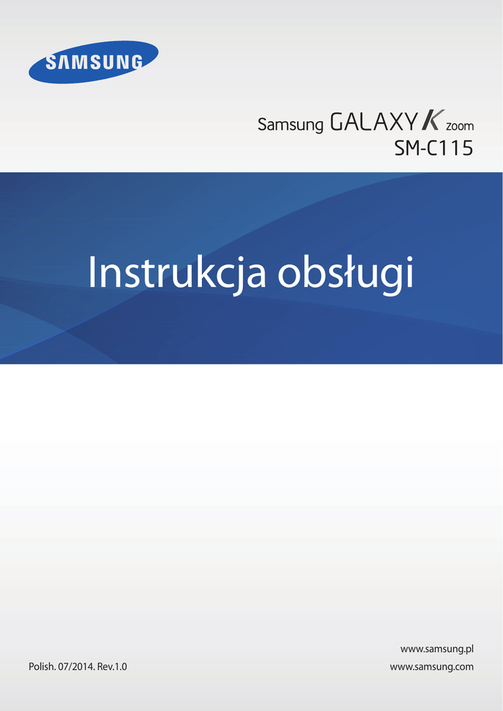 SM-C115 Instrukcja obsługi www.samsung.pl Polish. 07/2014. Rev.1.0 www.samsung.com Spis treści Przeczytaj najpierw Personalizacja 40 40 Wprowadzenie 43 44 44 45 45 8 Wygląd urządzenia 9Przyciski 10 Zawartość opakowania 11 Instalowanie karty SIM lub USIM i baterii 14 Ładowanie baterii 17 Wkładanie karty pamięci 19 Zakładanie paska na rękę 19 Włączanie i wyłączanie urządzenia 20 Trzymanie urządzenia 20 Blokowanie i odblokowywanie urządzenia Łączność sieciowa 47 47 49 49 Podstawowe informacje 21 24 25 29 33 33 35 37 39 Przełączanie na tryb ułatwień Zarządzanie ekranem startowym i ekranem aplikacji Zmienianie metody blokowania ekranu Ustawianie tapety Zmiana dzwonków Konfiguracja konta Przenoszenie kontaktów z innych urządzeń na swoje urządzenie Korzystanie z ekranu dotykowego Ikony wskaźników Panele powiadomień i szybkich ustawień Ekran startowy i aplikacji Otwieranie aplikacji Instalowanie lub odinstalowywanie aplikacji Wprowadzanie tekstu Używanie funkcji oszczędzania energii Uzyskiwanie dostępu do informacji pomocy Podłączanie do sieci komórkowej Podłączanie do sieci Wi-Fi Inteligentne przełączanie sieci Udostępnianie Internetu i korzystanie z routerów bezprzewodowych Ruchy i funkcje ułatwień obsługi 52 Ruchy sterujące 55Przybornik Telefon 56 59 60 2 Nawiązywanie połączeń Odbieranie połączeń Podczas rozmowy Spis treści Kontakty 62 63 107 Korzystanie ze studia klipów filmowych 108 Korzystanie z opcji trymera wideo Dodawanie kontaktów Zarządzanie kontaktami Internet i SNS Wiadomości i poczta e-mail 109Internet 110Chrome 111Hangouts 66Wiadomości 69E-mail 71 Google Mail Sterowanie głosem Aparat 73 78 79 81 82 91 99 112 S Voice 114Dyktafon 116 Wyszukiwanie głosowe Uruchamianie aparatu Korzystanie z widgetów aparatu Oddzielanie obszaru ekspozycji od obszaru ostrości Korzystanie z trybu zdalnego wizjera Korzystanie z trybu fotografowania Konfiguracja ustawień Konfigurowanie ustawień ogólnych Multimedia 117Muzyka 120Wideo 122YouTube 123Flipboard 123Google+ 123Zdjęcia 124 Gry Play 124 Muzyka Play 124 Kiosk Play Galeria 100 102 102 103 Wyświetlanie zawartości na urządzeniu Korzystanie z dodatkowych opcji Dodawanie etykiet twarzy Korzystanie z etykiet kontekstowych Bezpieczeństwo osobiste Studio 125 Tryb ratunkowy 127 Wysyłanie wiadomości z prośbą o pomoc 128 Powiadomienia o niekorzystnych warunkach atmosferycznych (Geo News) 104 Korzystanie ze studia fotograficznego 105 Korzystanie ze studia kolażu 106 Korzystanie z trybu Zdjęcia i nie tylko 3 Spis treści Narzędzia Ustawienia 130 S Szukacz 131 S Terminarz 134Kalkulator 134Zegar 136Dysk 136Dropbox 137Google 138 Tryb dzieci 141Mapy 142Notatka 143 Moje pliki 162 Ustawienia — informacje 162 SZYBKIE USTAWIENIA 162 POŁĄCZENIA SIECIOWE 167 POŁĄCZ I UDOSTĘPNIAJ 168 DŹWIĘK I WYŚWIETLACZ 172PERSONALIZACJA 173RUCH 174 UŻYTKOWNIK I BACKUP 175SYSTEM 182APLIKACJE 189 Ustawienia Google Łączenie z innymi urządzeniami Dostępność 190Dostępność 191 Otwieranie menu dostępności za pomocą przycisku ekranu startowego 191TalkBack 202 Zmiana rozmiaru czcionki 203 Powiększanie ekranu 203 Ustawianie przypomnień o powiadomieniach 203 Wyłączanie wszystkich dźwięków 204 Dostosowywanie ustawień napisów 205 Dostosowywanie balansu dźwięku 205 Korzystanie z dźwięku mono 205 Korzystanie z automatycznej wibracji dotykowej 206 Korzystanie z menu pomocniczych 208 Używanie funkcji inteligentnego przewijania 208 Ustawienia czasu reakcji dla dotykania i przytrzymywania 209 Korzystanie z trybu sterowania interakcją 209 Odbieranie lub kończenie połączeń 145NFC 147Bluetooth 150 S Beam 151 Szybkie połącz. 155 Screen Mirroring 157 Drukowanie z urządzenia przenośnego Menedżer urządzenia i danych 158 Aktualizowanie urządzenia 159 Przesyłanie plików pomiędzy urządzeniem a komputerem 160 Wykonywanie kopii zapasowej i przywracanie danych 161 Zerowanie danych 4 Spis treści 210 Korzystanie z trybu jednokrotnego dotyku 210 Konfigurowanie ustawień dostępności 211 Korzystanie z innych przydatnych funkcji Rozwiązywanie problemów Czyszczenie urządzenia 5 Przeczytaj najpierw Urządzenie oferuje funkcje komunikacji komórkowej i rozrywki cyfrowej zgodne z najnowszymi normami przy zastosowaniu patentów technicznych firmy Samsung. Szczegółowe informacje o funkcjach i właściwościach urządzenia znajdują się w niniejszej instrukcji obsługi oraz na stronie www.samsung.pl. • Aby bezpiecznie i prawidłowo korzystać z tego urządzenia, należy uważnie przeczytać tę instrukcję. • Przedstawione opisy bazują na ustawieniach domyślnych urządzenia. • W zależności od regionu, operatora sieci lub oprogramowania urządzenia opisana w instrukcji zawartość może być inna od wyświetlanej na urządzeniu. • Zawartość (zawartość wysokiej jakości) wymagająca znacznego wykorzystania procesora i pamięci RAM wpływa na całkowitą wydajność urządzenia. Aplikacje powiązane z tą zawartością mogą nie działać poprawnie w zależności od parametrów technicznych urządzenia i środowiska, w jakim uruchomiono aplikacje. • Firma Samsung nie ponosi odpowiedzialności za problemy z działaniem aplikacji dostarczonych przez inne firmy niż Samsung. • Firma Samsung nie ponosi odpowiedzialności za problemy z wydajnością lub zgodnością, wynikające z edycji ustawień rejestru lub modyfikacji oprogramowania systemu operacyjnego. Próba dostosowania systemu operacyjnego może spowodować nieprawidłowe działanie urządzenia lub aplikacji. • Oprogramowanie, źródła dźwięków, tapety, obrazy i inne pliki multimedialne są dostarczane z urządzeniem na podstawie umowy licencyjnej o ograniczonym użytkowaniu. Wyodrębnianie tych materiałów i wykorzystywanie ich do celów komercyjnych lub innych stanowi naruszenie praw do własności intelektualnej. Użytkownicy ponoszą całkowitą odpowiedzialność za niezgodne z prawem korzystanie z multim