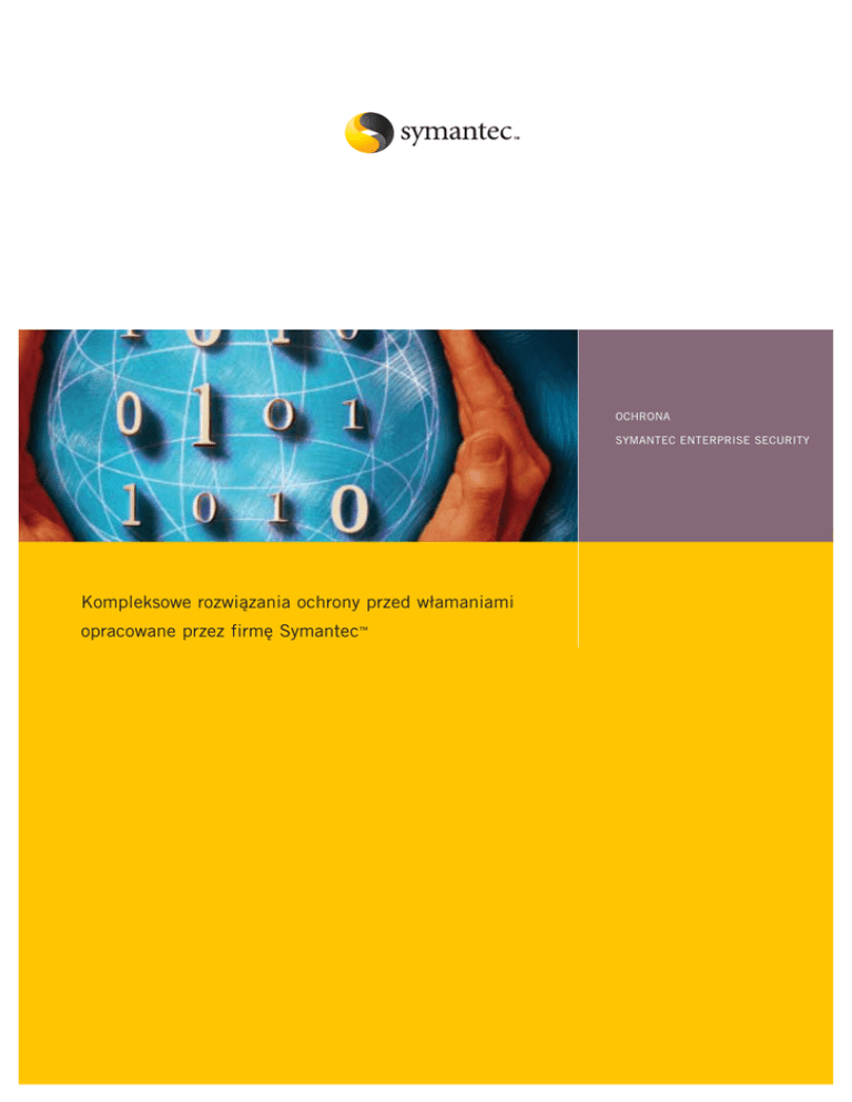 OCHRONA SYMANTEC ENTERPRISE SECURITY Kompleksowe rozwiązania ochrony przed włamaniami opracowane przez firmę Symantec™ Wykrywanie, zapobieganie, reagowanie i zarządzanie Zabezpiecz aplikacje i zasoby przedsiębiorstwa za pomocą zaawansowanego systemu ochrony przed włamaniami Gwałtowny rozwój technologii sieciowych stwarza mnóstwo możliwości prowadzenia działalności gospodarczej w Internecie. Z tymi możliwościami wiążą się jednak złożone problemy dotyczące bezpieczeństwa. Aplikacje e-biznesowe umożliwiające współpracę, sieci VPN, sieci ekstranet i ogólnodostępne witryny WWW nieustannie zwiększają trudność zabezpieczenia dostępu do sieci — a w jeszcze większym stopniu utrudniają zapewnianie nieskrępowanego dostępu do zasobów przy jednoczesnym utrzymaniu intruzów z dala od cennych zasobów i operacji. Rozmaite obowiązki wynikające z uregulowań prawnych oraz rozpowszechnienie znajomości metod i celów ataków dodatkowo zwiększają złożoność problemu. Zapory ogniowe i inne urządzenia zabezpieczające chronią przed nieupoważnionym dostępem do zasobów, mają jednak ograniczone możliwości uniemożliwienia hakerom ataków typu DoS, stosowania koni trojańskich, robaków i wielu innych destrukcyjnych metod ataków, których liczba stale rośnie. Wykonanie dodatkowego kroku w celu zabezpieczenia się przed nieupoważnionym dostępem, kradzieżą, manipulowaniem danymi i ustawieniami oraz przed atakami na dostępność sieci wymaga uzupełniających rozwiązań, które umożliwiają proaktywną kontrolę nad strukturami zabezpieczającymi. Rodzina rozwiązań ochrony przed włamaniami dostarczana przez lidera w dziedzinie zabezpieczeń internetowych Rozwiązania z serii Symantec™ Intrusion Protection wchodzących w ich skład. Jako mechanizmy ulepszają ogólny stan zabezpieczeń organizacji, proaktywnej ochrony przed włamaniami zbierają umożliwiając bezpieczne korzystanie z zalet pochodzące od wielu inteligentnych agentów dane Internetu przy jednoczesnym kontrolowaniu kosztów, dotyczące zdarzeń związanych z zabezpieczeniami, umożliwieniu planowania wydajnego użycia zasobów aby błyskawicznie wykryć naruszenia zabezpieczeń informatycznych i zmniejszeniu ryzyka związanego i wdrożyć strategie zabezpieczeń w celu z odpowiedzialnością prawną. Opracowana przez uniemożliwienia ataków. Dzięki wielu różnym firmę Symantec rodzina wielowarstwowych rozproszonym czujnikom bezpieczeństwa rozwiązań ochrony przed włamaniami monitoruje rozwiązania te zapewniają wykrywanie i ochronę ruch sieciowy, wykrywa próby włamań wewnętrznych przed szerokim zakresem ataków. i z zewnątrz, reaguje na ataki w czasie rzeczywistym oraz zapewnia wszechstronne funkcje zarządzania upraszczające administrowanie i zabezpieczające przed włamaniami. Rozwiązania z serii Symantec Intrusion Protection zapewniają prosty sposób trafnego identyfikowania niepożądanych działań występujących zarówno w sieciach, jak i w poszczególnych komputerach Wykrywanie, zapobieganie, reagowanie i zarządzanie Wykrywanie, zapobieganie, reagowanie i zarządzanie. Firma Symantec oferuje kompleksowe podejście do ochrony przed włamaniami Firma Symantec oferuje produkty zabezpieczające Traktowane jako całość, rozwiązania z serii przed włamaniami, chroniące przedsiębiorstwo na Symantec Intrusion Protection pozwalają wykrywać, wielu poziomach: Rozwiązania firmy Symantec dla uniemożliwiać, reagować i zarządzać szeroką gamą sieci monitorują ruch sieciowy w celu ochrony sieci incydentów, takich jak skanowanie portów, przed atakami i ukrytym skanowaniem podszywanie się (spoofing), ataki przez szybkie sieci rozpoznawczym. Rozwiązania dla poszczególnych jak i łącza telefoniczne, manipulowanie zawartością komputerów (hostów) monitorują system operacyjny plików, wandalizm i wiele innych destrukcyjnych i dzienniki zdarzeń w celu ochrony serwerów działań. Rozwiązania te zapewniają również i aplikacji. Rozwiązania pułapkowe zapewniają zaawansowaną ochronę przy użyciu rozbudowanych dodatkową, wszechstronną ochronę, zapewniając funkcji, takich jak monitorowanie szybkości ruchu wczesne ostrzeganie o zagrożeniach i inteligentnie sieciowego w celu wykrywania ataków typu przekierowując ataki do kontrolowanych środowisk, „odmowa obsługi” (DoS) oraz wykrywanie anomalii w których można je bezpiecznie powstrzymać. w protokołach w czasie rzeczywistym w celu wykrywania dotąd nieznanych ataków typu „godzina zero”, które są niewykrywalne dla innych systemów — bez konieczności jakichkolwiek aktualizacji sygnatur. Symantec ManHunt ™ wdrażanie reguł zabezpieczeń, błyskawiczne Program Symantec ManHunt zapewnia reagowanie i alerty zabezpieczeń, co umożliwia zaawansowaną ochronę dostępu do sieci — lepszą ochronę najważniejszych serwerów. błyskawiczną i nie obciążającą zasobów W odróżnieniu od systemów niekorzystnie informatycznych fałszywymi alarmami. Dzięki wpływających na wydajność serwerów, program szybkiemu wykrywaniu przy gigabitowej szybkości, Symantec Host IDS zapewnia zachowanie właściwej analizie zagrożeń i reagowaniu w czasie równowagi między bezpieczeństwem a wydajnością rzeczywistym, wykrywaniu rzeczywistych anomalii serwerów. w protokołach i wyróżniającej się architekturze Symantec™ Decoy Server hybrydowej program ten ustanawia nowy standard proaktywnej ochrony sieci przed atakami. Program Symantec Decoy Server jest to serwer pułapkowy (honeypot) klasy korporacyjnej, Symantec™ Host IDS który ostrzega o włamaniach natychmiast po ich Program Symantec Host IDS jest to skalowalny wykryciu. Tworząc realistyczne wirtualne system ochrony przed włamaniami, zapewniający środowisko, służy jako cel ataków, które inaczej monitorowanie i zapobieganie naruszeniom byłyby skierowane na prawdziwe serwery i pozwala zabezpieczeń w czasie rzeczywi