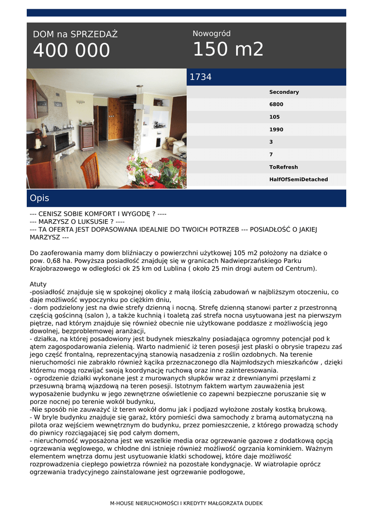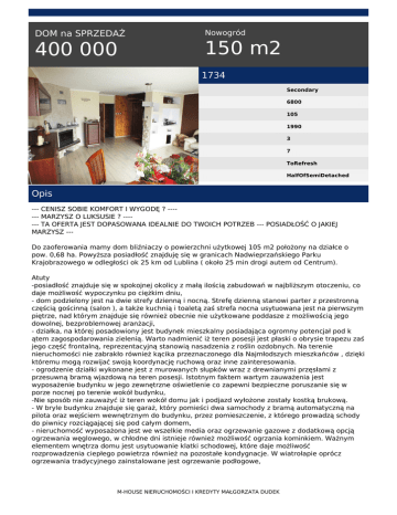 400 000 150 m2 - M-House Nieruchomości i Kredyty
