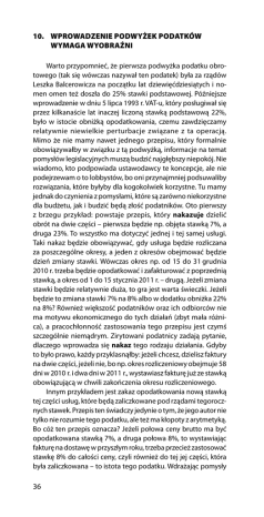 10. Wprowadzenie podwyżek podatków wymaga wyobraźni Warto przypomnieć, że pierwsza podwyżka podatku obrotowego (tak się wówczas nazywał ten podatek) była za rządów Leszka Balcerowicza na początku lat dziewięćdziesiątych i nomen omen też doszła do 25% stawki podstawowej. Późniejsze wprowadzenie w dniu 5 lipca 1993 r. VAT-u, który posługiwał się przez kilkanaście lat inaczej liczoną stawką podstawową 22%, było w istocie obniżką opodatkowania, czemu zawdzięczamy relatywnie niewielkie perturbacje związane z ta operacją. Mimo że nie mamy nawet jednego przepisu, który formalnie obowiązywałby w związku z tą podwyżką, informacje na temat pomysłów legislacyjnych muszą budzić najgłębszy niepokój. Nie wiadomo, kto podpowiada ustawodawcy te koncepcje, ale nie podejrzewam o to lobbystów, bo oni przynajmniej podsuwaliby rozwiązania, które byłyby dla kogokolwiek korzystne. Tu mamy jednak do czynienia z pomysłami, które są zarówno niekorzystne dla budżetu, jak i budzić będą złość podatników. Oto pierwszy z brzegu przykład: powstaje przepis, który nakazuje dzielić obrót na dwie części – pierwsza będzie np. objęta stawką 7%, a druga 23%. To wszystko ma dotyczyć jednej i tej samej usługi. Taki nakaz będzie obowiązywać, gdy usługa będzie rozliczana za poszczególne okresy, a jeden z okresów obejmować będzie dzień zmiany stawki. Wówczas okres np. od 15 do 31 grudnia 2010 r. trzeba będzie opodatkować i zafakturować z poprzednią stawką, a okres od 1 do 15 stycznia 2011 r. – drugą. Jeżeli zmiana stawki będzie relatywnie duża, to gra jest warta świeczki. Jeżeli będzie to zmiana stawki 7% na 8% albo w dodatku obniżka 22% na 8%? Również większość podatników oraz ich odbiorców nie ma motywu ekonomicznego do tych działań (zbyt mała różnica), a pracochłonność zastosowania tego przepisu jest czymś szczególnie niemądrym. Zirytowani podatnicy zadają pytanie, dlaczego wprowadza się nakaz tego rodzaju działania. Gdyby to było prawo, każdy przyklasnąłby: jeżeli chcesz, dzielisz faktury na dwie części, jeżeli nie, bo np. okres rozliczeniowy obejmuje 58 dni w 2010 r. i dwa dni w 2011 r., wystawiasz fakturę już ze stawką obowiązującą w chwili zakończenia okresu rozliczeniowego. Innym przykładem jest zakaz opodatkowania nową stawką tej części usług, które będą zaliczkowane pod rządami tegorocznych stawek. Przepis ten świadczy jedynie o tym, że jego autor nie tylko nie rozumie tego podatku, ale też ma kłopoty z arytmetyką. Bo cóż ten przepis oznacza? Jeżeli połowa ceny brutto ma być opodatkowana stawką 7%, a druga połowa 8%, to wystawiając fakturę na dostawę w przyszłym roku, trzeba przecież zastosować stawkę 8% do całości ceny, czyli również do tej jej części, która była zaliczkowana – to istota tego podatku. Wdrażając pomysły 36 naszego ustawodawcy, znowu trzeba będzie dzielić fakturę na dwie części, co jest nie tylko pracochłonne, ale niekiedy niemożliwe z przyczyn technicznych: z reguły systemy fakturowe nie są w stanie „urodzić” takiego dokumentu, czyli będziemy na przełomie roku ręcznie wystawiać setki tysięcy faktur. Tylko po co? Znowu, gdyby ten przepis był uprawnieniem, a nie obowiązkiem, to życie stałoby się trochę prostsze. Takich przykładów jest więcej. Zdenerwowani podatnicy zadają oczywiste pytanie, kto podpowiada te rozwiązania, bo przecież w projektach ich nie było. Być może po raz kolejny reaktywowały się jakieś„rady”, które dbają o to, aby nasz ustawodawca miał najgorszą opinię. Być może tu należy szukać „sprawstwa w formie podżegania” do psucia przepisów. Być może również przepisy te są po prostu dowodem naszego braku wyobraźni podatkowej, która ma głęboko „liberalny” na swój sposób charakter: to, co obiektywnie skomplikowane, nakazuje ona „upraszczać”, a co proste – komplikować. Taki nasz los. 37
