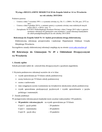 Zasady Rekrutacji do G 49 2015 - Zespół Szkół nr 14 we Wrocławiu