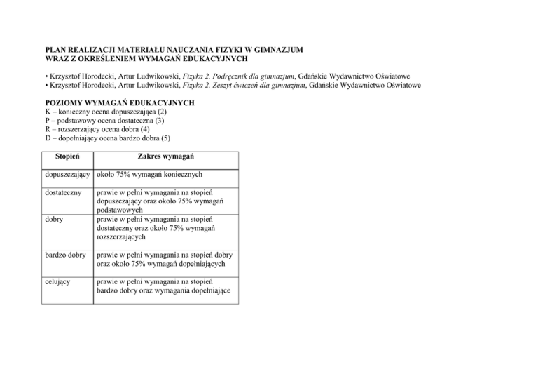 Fizyka plan realizacji materiału cz. 2 GWO