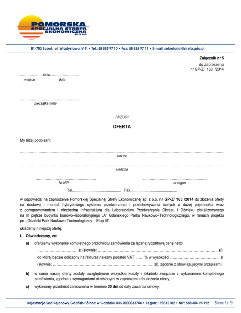 Załącznik nr 5 do Zaproszenia - Wzór formularza oferty 20-10-2014