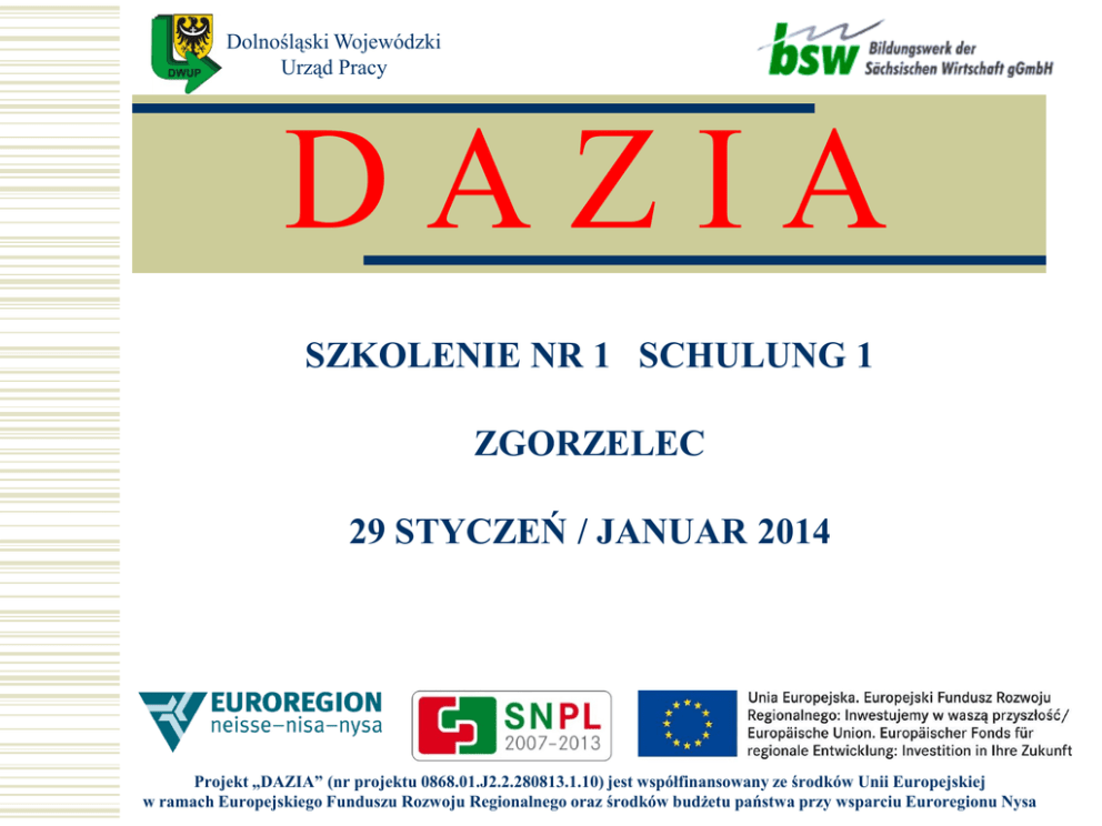 SZKOLENIE NR 1 SCHULUNG 1 ZGORZELEC 29 STYCZEŃ