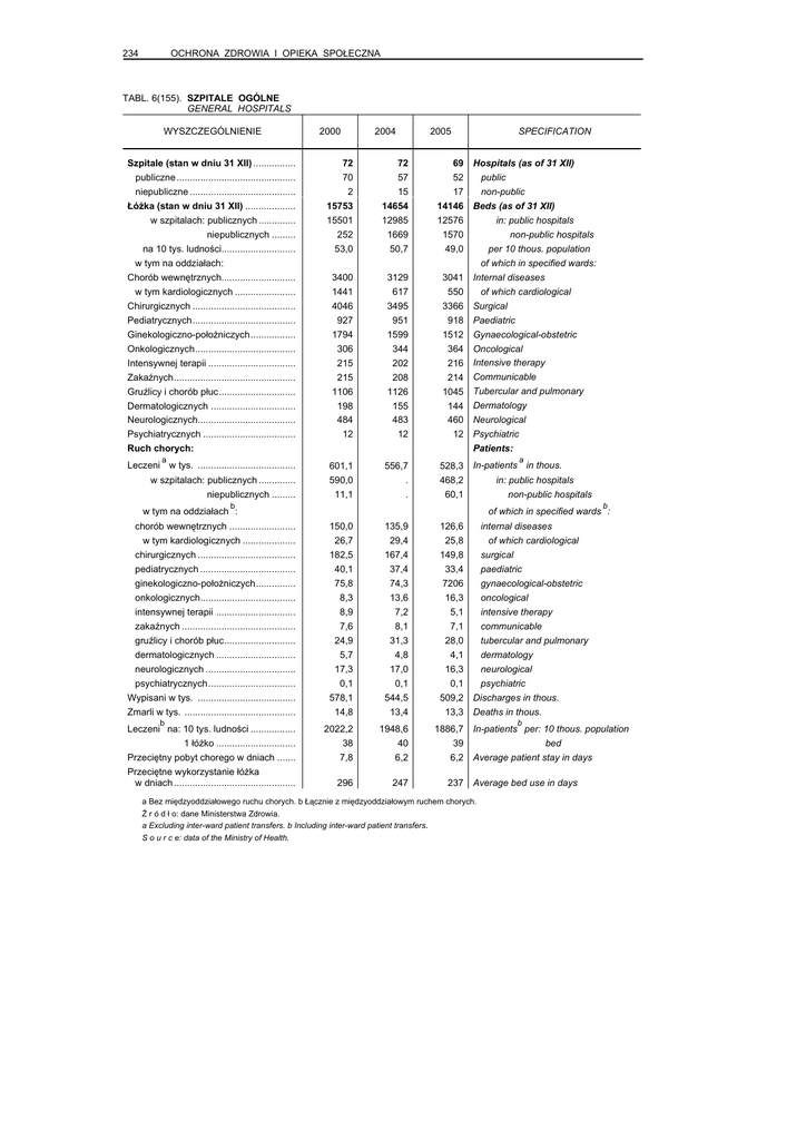 OCHRONA ZDROWIA I OPIEKA SPOŁECZNA 234 TABL. 6(155
