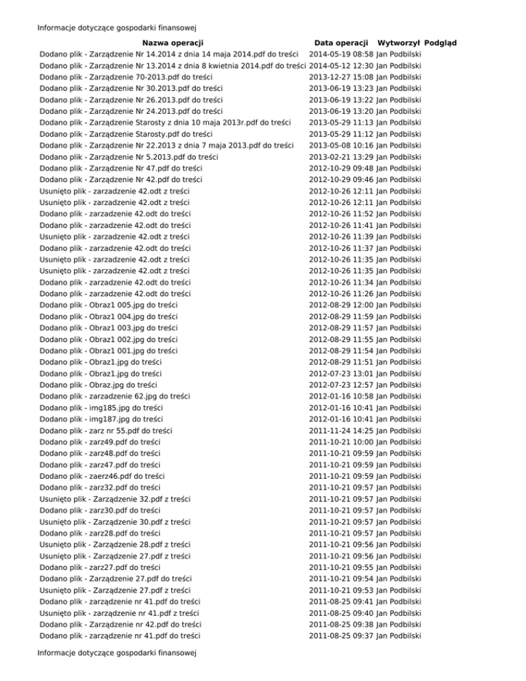 Informacje dotyczące gospodarki finansowej Informacje dotyczące