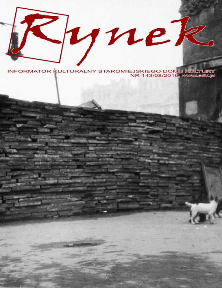 INFORMATOR KULTURALNY STAROMIEJSKIEGO DOMU KULTURY NR 143/08/2016, www.sdk.pl WSTEP , Spis treści: Milicja PPS na barykadach... ............................3 Jazz na Starówce - program sierpień 2016 .....11 Klub Piosenki przed wakacjami .....................12 Józef nabiera doświadczenia .........................13 Fotoplastikon 1944 ..........................................14 Informacje kulturalne - bieżące imprezy, wydarzenia, spotkania... .................................15 Biblioteka staromiejska .................................21 Kluby, zajęcia, stałe formy pracy w SDK Plastyka............................................................22 Galerie...............................................................22 Muzyka..............................................................23 Edukacja artystyczna.........................................23 Kulturoterapia....................................................23 Dla dzieci i młodzieży..........................................24 Hobby................................................................24 Taniec................................................................25 Literatura........................................................25 Dla Seniorów......................................................25 Piwnica na Wójtowskiej......................................26 Teatr...................................................................26 Fotoplastikon...................................................27 1944 - Dyskretny urok Stolycy ........................28 Organizatorzy zastrzegają sobie możliwość zmian w programie (np.: terminu lub godziny rozpoczęcia imprezy, składu zespołów). WW WWW W Polecamy Państwa uwadze... nasza strona internetowa: www.sdk.pl inne Domy Kultury w Warszawie: www.domykultury.waw.pl Okładka: Barykada odgradzającą Rynek Starego Miasta od Zapiecka i Świętojańskiej - ujęcie od strony Zapiecka. Autor zdjęcia: Jerzy Chojnacki „Chojna”. [Fot. pochodzi ze zbiorów Muzeum Powstania Warszawskiego] NIE NAM OCENIAĆ... Kilka lat temu, podczas rozmowy z jednym z warszawskich Powstańców zadałem pytanie, czy z przynależności do różnych organizacji politycznych i zarazem wojskowych (m.in.: AK, PAL, AL, WSOP, OW PPS, KB, NSZ, Orlęta, Związek Syndykalistów Polskich itd.), w życiu codziennym Starówki, wynikały jakieś nieporozumienia? Otrzymałem odpowiedź, że nikt tego tak naprawdę nie rozróżniał i nie potrzebował - nie było to w ogóle ważne. Myślę, że to nadal nie jest ważne i warto to powtarzać, gdy wokół nas historię próbuje się pisać na nowo, gdy to, w jakiej było się organizacji politycznej, czy walczyło przed, w trakcie, czy po 1944 roku, znów, jak w PRL, zaczyna wyznaczać próg bohaterstwa, gdy celowo lub tylko odpryskowo (być może bezwiednie), zapomina się o jednych żołnierzach, by przywrócić pamięć i honor innym. O tych, o których są poniższe wspomnienia "nie pamiętano" ani przed, ani po 1989 r. Nie pamięta się i dziś. I choć wyraźnie wskazana jest ich przynależność do Polskiej Partii Socjalistycznej, to nie służy osądzaniu czynów i ludzi. Drukując wspomnienia nie wartościujemy, nie ważymy heroizmu naszych antenatów. Drukujemy by dokumentować i przypominać. Te wspomnienia nie dzielą. Bo Żołnierzy Podziemia, walczących o wolną Polskę po 1939 roku, bez względu na to od kiedy lub do kiedy walczyli, jakie barwy "szczepowe" nosili, jakie mieli poglądy społeczne i polityczne, nie nam oceniać. Piotr Sobieniak POWSTANIE WARSZAWSKIE Stare Miasto - sierpień 1944 r. Fot. Jerzy Chojnacki „Chojna” [Fot. poch. ze ze zbiorów Muzeum Powstania Warszawskiego - www.1944.pl] Źródło pierwotne: Ludność cywilna w Powstaniu Warszawskim, Warszawa 1974, t. I, s. 311-319. Przedruk za: Socjaliści w powstaniu warszawskim 1944 r., wybór tekstów K. Dunin-Wąsowicz, Oficyna Graficzno-Wydawnicza Typografika, Warszawa 2004. STANISŁAW SOBOLEWSKI MILICJA PPS NA BARYKADACH STARÓWKI Nasi towarzysze, członkowie VI batalionu Milicji PPS na Starym Mieście, od pierwszych godzin Powstania brali udział w akcjach bojowych, a później weszli w skład kadry organizacji działającej dla potrzeb ludności. Już pierwszego dnia Powstania około godziny 17 zostaliśmy ostrzelani przez czołgi niemieckie, jadące bodajże z Żoliborza. Po pierwszych starciach, około 18, weszliśmy do akcji. Mieliśmy niewielką ilość broni, ale z miejsca przystą- piliśmy do budowy barykad, głównie regulujących. Udało się nam zbudować barykadę na rogu ulicy Długiej i placu Krasińskich. Czołgi niemieckie tamtędy już przejść nie mogły. Noc wykorzystaliśmy także dla podobnej akcji. Nazajutrz nastąpiła mobilizacja członków naszej organizacji. Zajęliśmy odpowiedni lokal na siedzibę naszego batalionu i przez osiem czy dziewięć dni - łącznie z batalionem Łukasińskiego z AK - byliśmy jedyną organizacją broniącą Starego Miasta. Dopiero w miarę ewakuacji Woli zaczęły przychodzić oddziały wojskowe podległe AK lub AL. O ile w pierwszym okresie musieliśmy brać czynny udział w obronie Starego Miasta, to później, kiedy przybyły oddziały podległe AK, one ten obowiązek wzięły na siebie. Na Stare Miasto przybyło również dowództwo AL. Oddziały AL dostały zadanie obrony jednej z barykad oraz tereny przyległe do części Wisłostrady. W wyniku porozumienia z dowódcą batalionu im. Łukasińskiego, mjr. „Sienkiewiczem", podjęliśmy się obrony terenów przy3 POWSTANIE WARSZAWSKIE Płonący Pałac Pod Czterema Wiatrami przy ul. Długiej 38/40 (siedziba Arbeitsamt Warschau). Fot. Józef Jerzy Karpiński „Jerzy”. [Fot. poch. ze zbiorów Muzeum Powstania Warszawskiego] ległych do byłego getta, poczynając od pałacu Mostowskich aż do torów kolejowych przy Dworcu Gdańskim. Niemcy już od pierwszego dnia Powstania przypuszczali kilkakrotnie szturm na nasz odcinek. Rankiem drugiego dnia Powstania tylko 