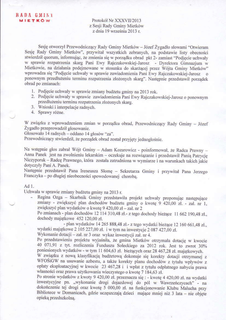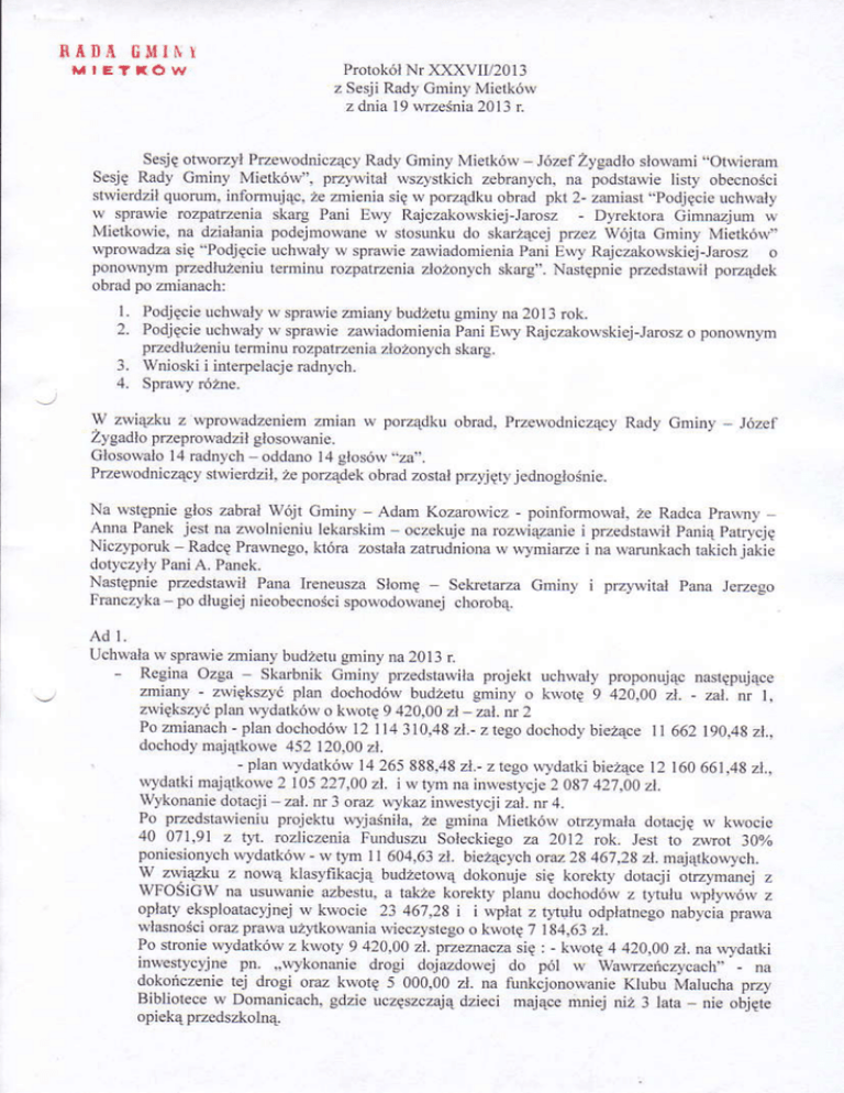 v niązku z ryn zmkiąl Óbrad' sesji slo*'ani 'Zań}km sesję Rady cniny Mielków'.'