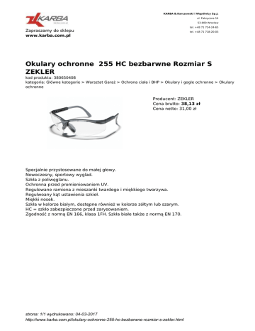 Okulary ochronne 255 HC bezbarwne Rozmiar S ZEKLER