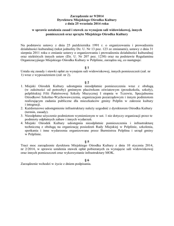 Zarządzenie nr 9/2014 - Miejski Ośrodek Kultury w Pelplinie