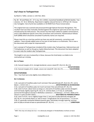 Joy`s keys to Tachyporinae