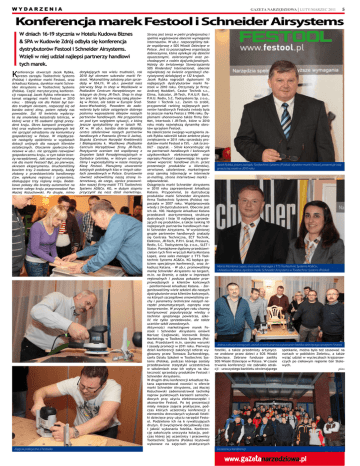 wydarzenia GAZETA NARZĘDZIOWA | LUTY/MARZEC 2011 5 Konferencja marek Festool i Schneider Airsystems W dniach 16-19 stycznia w Hotelu Kudowa Biznes & SPA w Kudowie Zdrój odbyła się konferencja dystrybutorów Festool i Schneider Airsystems. Wzięli w niej udział najlepsi partnerzy handlowi tych marek. K onferencje otworzyli Jacek Rybka, prezes zarządu Tooltechnic Systems (Polska) i dyrektor marki Festool, oraz Arkadiusz Katana, dyrektor marki Schneider Airsystems w Tooltechnic Systems (Polska). Część merytoryczną konferencji rozpoczął Jacek Rybka referatem na temat osiągnięć marki Festool w 2010 roku: – Ubiegły rok dla Polski był bardzo trudnym okresem, rozpoczął się od bardzo ostrej zimy, potem nękały nas powodzie. Zaś 10 kwietnia wydarzyła się smoleńska katastrofa lotnicza, w której wraz z 95 osobami zginął prezydent kraju. Okres kampanii prezydenckiej oraz wyborów samorządowych też nie sprzyjał odradzaniu się koniunktury gospodarczej w Polsce. W międzyczasie nastąpiły opóźnienia w wypłatach dotacji unijnych dla naszych klientów ostatecznych. Otoczenie społeczno-biznesowe w ub.r. nie sprzyjało rozwojowi gospodarczemu kraju, w tym także branży narzędziowej. Jaki zatem był miniony rok dla marki Festool? Był, po pierwsze, okresem eksperymentu. Uruchomiliśmy bowiem trzy 2-osobowe zespoły, każdy złożony z przedstawiciela handlowego (tzw. opiekuna regionu) i prezentera, obsługujące trzy regiony kraju. Dodatkowo pokazy dla branży automotive na terenie całego kraju przeprowadzał Pan Maciej Kożuchowski. Po drugie, mimo Zajęcia praktyczne z Festoola dotykających nas wielu trudności, rok 2010 był okresem sukcesów marki Festool. Wykonaliśmy założony plan sprzedaży w 104,1%. W ub.r. powstał nasz pierwszy Shop in shop w Wasilkowie w Podlaskim Centrum Narzędziowym należącym do firmy JR-Tech. Shop in shop ten jest nie tylko pierwszą taką placówką w Polsce, ale także w Europie Środkowo-Wschodniej. Powodem do zadowolenia było także osiągnięcie dobrego poziomu wyposażenia sklepów naszych partnerów handlowych. Nie przypomina on pod tym względem sytuacji, z którą jeszcze spotykaliśmy się w latach 90. XX w. W ub.r. bardzo dobrze działały centra szkoleniowe naszych partnerów handlowych z Poznania (firma U Jacha), Słupska (Centrum Narzędzi Kneblewski) i Białegostoku k. Wasilkowa (Podlaskie Centrum Narzędziowe firmy JR-Tech). Pozytywnie oceniam też współpracę z Zespołem Szkół Ponadgimnazjalnych w Garbatce Letnisko, w którym utworzyliśmy i wyposażyliśmy w nasze maszyny Klasę Festool. Planujemy utworzenie kolejnych podobnych klas w innych szkołach zawodowych w Polsce. Gruntownie również odnowiliśmy naszą stronę internetową, do czego, oprócz pracowników naszej firmy-matki TTS Tooltechnic Systems AG&Co. KG, w dużym stopniu przyczynił się nasz dział marketingu. Strona jest teraz w pełni profesjonalna i spełnia wygórowane obecnie wymagania internautów. W ub.r. rozpoczęliśmy także współpracę z SOS Wioski Dziecięce w Polsce. Jest to pozarządowa organizacja dobroczynna, która opiekuje się dziećmi opuszczonymi, osieroconymi oraz pochodzącymi z rodzin dysfunkcjonalnych. Należy do światowego Stowarzyszenia SOS Kinderdorf International, obecnie największej na świecie organizacji charytatywnej działającej w 132 krajach. Jacek Rybka nagrodził dyplomami 10 najlepszych dystrybutorów marki Festool w 2010 roku. Otrzymały je firmy: Andrzej Możdżeń, Castor Technik s.c., Elima, Italcolor, JR-Tech, P.H.U.P. Bart, P.H.U. Redix, S.C. Toolsystems Sp. z o.o., Stator i Technik s.c. Zanim to zrobił, przypomniał ranking najlepszych partnerów handlowych Festoola (wtedy była to jeszcze marka Festo) z 1996 roku. Dyplomami uhonorowano także firmy DorMet, Intertools i JR-Tech, które w 2010 roku miały największą dynamikę obrotów sprzętem Festool. Na zakończenie swojego wystąpienia Jacek Rybka nakreślił także ambitne plany zwiększenia w 2011 roku sprzedaży produktów marki Festool o 15%. – Jak to zrobić? – zapytał. – Silnie koncentrując się na partnerach handlowych i końcowych użytkownikach elektronarzędzi oraz osprzętu Festool i zapewniając im systemowe wsparcie: handlowe (m.in. przez prezentacje produktów u klientów), serwisowe, szkoleniowe, marketingowe oraz szeroką informację w internecie (e-mailing, strona internetowa marki) – odpowiedział. Osiągnięcia marki Schneider Airsystems w 2010 roku zaprezentował Arkadiusz Katana. Przypomniał, że dystrybucję produktów marki Schneider Airsystems firma Tooltechnic Systems (Polska) rozpoczęła w 2007 roku. Współpracowała wtedy z 24 dystrybutorami. Obecnie jest ich ok. 100. Następnie Arkadiusz Katana przedstawił asortymentową strukturę dystrybucji i listę 10 najlepiej sprzedających się produktów, a także ranking 10 najlepszych partnerów handlowych marki Schneider Airsystems. W wyróżnionej grupie partnerów handlowych znalazły się Centrala Techniczna, ECT Technik, Elektron, JR-Tech, P.P.H. Grad, Pressura, Redix, S.C. Toolsystems Sp. z o.o., SLET i Stator. Pamiątkowe dyplomy przedstawicielom tych firm wręczyli Marta Montana Lopez, area sales manager z TTS Tooltechnic Systems AG&Co. KG będąca gościem specjalnym konferencji, oraz Arkadiusz Katana. – W ub.r. promowaliśmy markę Schneider Airsystems na targach, m.in. na Dremie, a także w imprezach regionalnych i podczas pokazów przeprowadzanych u klientów końcowych – poinformował Arkadiusz Katana. – Zorganizowaliśmy wiele szkoleń dla naszych dystrybutorów oraz klientów końcowych, na których szczegółowo omawialiśmy cechy i parametry techniczne naszych narzędzi pneumatycznych, osprzętu oraz kompresorów. W przyszłym roku chcemy kontynuować popularyzację wiedzy o technice sprężonego powietrza, szkolić nie tylko sprzedawców, ale także uczniów szkół zawodowych. Aktywności marketingowe marek Festool i Schneider Air