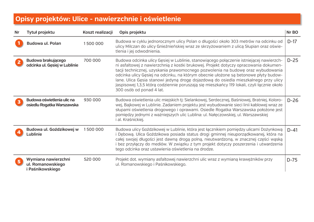Opisy projektów: Ulice - nawierzchnie i oświetlenie