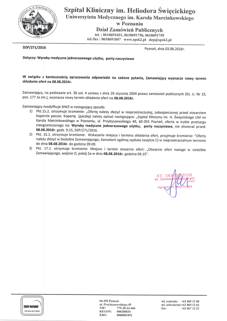 zwiqzku z koniecznoSciq opracowania odpowiedzi na zadane pytania, Zamawiajqcy wyznacza nowy termin