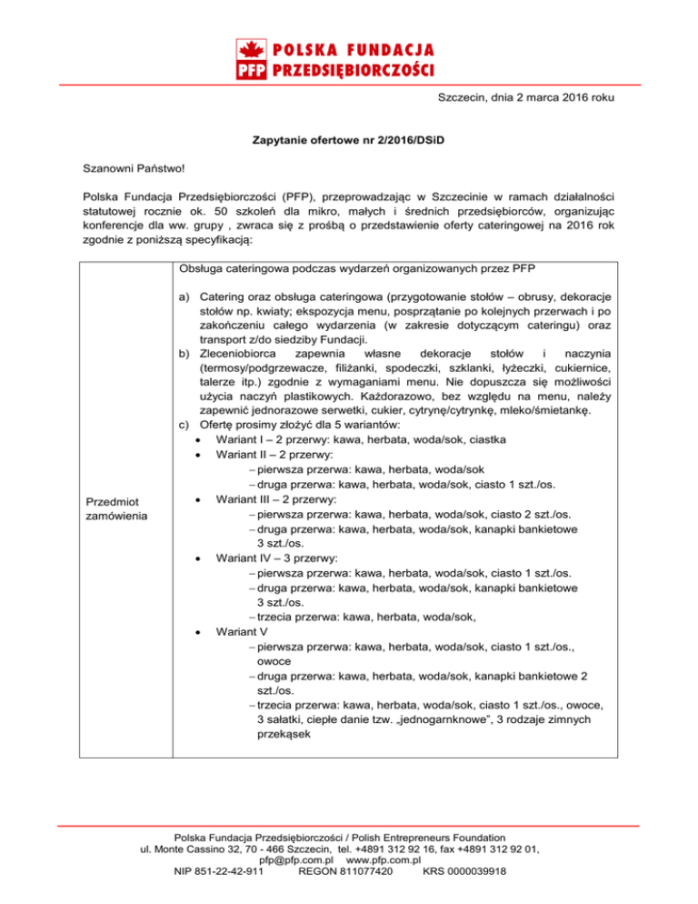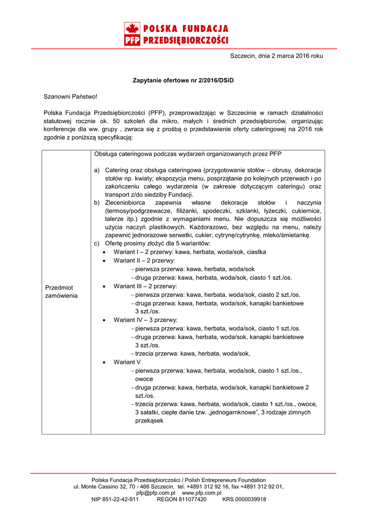 Zapytanie ofertowe - Polska Fundacja Przedsiębiorczości