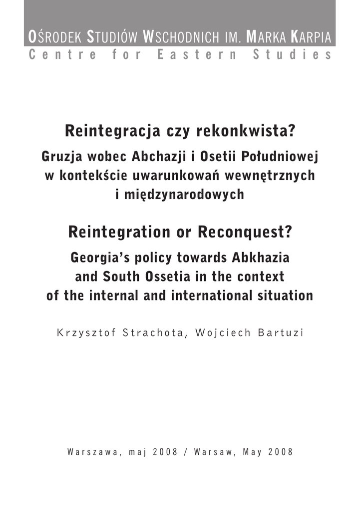 O ÂRODEK S TUDIÓW W SCHODNICH IM. M ARKA K ARPIA C e n t r e f o r E a s t e r n S t u d i e s Reintegracja czy rekonkwista? Gruzja wobec Abchazji i Osetii Po∏udniowej w kontekÊcie uwarunkowaƒ wewn´trznych i mi´dzynarodowych Reintegration or Reconquest? Georgia’s policy towards Abkhazia and South Ossetia in the context of the internal and international situation Kr zysztof Strachota, Wojciech Bartuzi Warszawa, maj 2008 / Warsaw, May 2008 © Copyright by OÊrodek Studiów Wschodnich im. Marka Karpia © Copyright by Centre for Eastern Studies Redaktor / Editor Anna ¸abuszewska Wspó∏praca / Co-operation Katarzyna Kazimierska Opracowanie graficzne / Graphic design Dorota Nowacka T∏umaczenie / Translation OSW / CES Wspó∏praca / Co-operation Peter Hart Wydawca / Publisher OÊrodek Studiów Wschodnich im. Marka Karpia Centre for Eastern Studies ul. Koszykowa 6a Warszawa / Warsaw, Poland tel./phone + 48 /22/ 525 80 00 fax: +48 /22/ 525 80 40 Spis treÊci / Contents Reintegracja czy rekonkwista? Gruzja wobec Abchazji i Osetii Po∏udniowej w kontekÊcie uwarunkowaƒ wewn´trznych i mi´dzynarodowych / 5 Tezy / 5 1. Konflikty w Abchazji i Osetii Po∏udniowej – geneza / 7 2. Sytuacja wokó∏ konfliktów w latach dziewi´çdziesiàtych / 10 3. Zmiana uwarunkowaƒ wewn´trznych i mi´dzynarodowych / 14 4. Nowa strategia Tbilisi wobec parapaƒstw: Gruzja wobec konfliktów po roku 2003 / 17 5. Gruzja Saakaszwilego wobec konfliktów w Abchazji i Osetii Po∏udniowej – ocena i perspektywy / 41 Reintegration or Reconquest? Georgia's policy towards Abkhazia and South Ossetia in the context of the internal and international situation / 45 Main points / 45 1. The origins of the conflicts in Abkhazia and South Ossetia / 47 2. Situation of the conflicts in the 1990s / 51 3. Changed internal and international conditions / 54 4. Tbilisi’s new strategy on the para-states: Georgia on the conflicts after 2003 / 58 5. Saakashvili’s Georgia and the conflicts in Abkhazia and South Ossetia – assessment and prospects / 82 Reintegracja czy rekonkwista? Gruzja wobec Abchazji i Osetii Po∏udniowej w kontekÊcie uwarunkowaƒ wewn´trznych i mi´dzynarodowych Tezy 1. Konflikty w Abchazji i Osetii Po∏udniowej od poczàtku lat dziewi´çdziesiàtych pozostajà g∏ównym problemem bezpieczeƒstwa Gruzji, a obok ormiaƒsko-azerskiego konfliktu o Górski Karabach – g∏ównym problemem bezpieczeƒstwa dla Kaukazu Po∏udniowego. 2. W latach dziewi´çdziesiàtych wokó∏ konfliktów na Kaukazie Po∏udniowym trwa stan zawieszenia. Status quo opiera∏o si´ na pozorach wywalczonej w wojnach podmiotowoÊci samozwaƒczych republik Abchazji i Osetii Po∏udniowej (ich powstanie i istnienie by∏o i jest mo˝liwe wy∏àcznie dzi´ki wsparciu Rosji) i pozorach procesu pokojowego realizowanego pod dyktando Rosji. Stan ten odpowiada∏ ówczesnym realiom i potencja∏owi stron zaanga˝owanych w konflikt (w tym przede wszystkim s∏aboÊci Gruzji aspirujàcej do odzyskania kontroli nad zbuntowanymi prowincjami) i realiom geopolitycznym, które czyni∏y z Rosji dominujàcà si∏´ politycznà i militarnà w tych konfliktach oraz w ca∏ym regionie. Mniej wi´cej dekad´ pozwala∏o to utrzymywaç minimum stabilnoÊci wokó∏ konfliktów – zamro˝enie dzia∏aƒ wojennych. 3. AnachronicznoÊç i niefunkcjonalnoÊç stanu zawieszenia wokó∏ Abchazji i Osetii Po∏udniowej oraz iluzorycznoÊç ich podmiotowoÊci i procesu pokojowego zacz´∏y byç coraz mocniej widoczne na prze∏omie wieków, a bardzo wyraêne sta∏y si´ w 2001 i 2003 roku. W tym czasie dosz∏o do znaczàcych zmian geopolitycznych (rozszerzenie NATO i UE na wschód, wzrost zainteresowania kwestiami bezpieczeƒstwa i promocji demokracji, a tak˝e nowymi êród∏ami surowców energetycznych po 11 wrzeÊnia 2001 roku), w wyniku których Gruzja i ca∏y Kaukaz Po∏udniowy znalaz∏y P U N K T W I D Z E N I A 5 si´ w orbicie zainteresowania Zachodu (poczàtkowo g∏ównie USA), a tym samym pojawi∏a si´ alternatywa dla Rosji. BezpoÊrednie i kluczowe prze∏o˝enie na sytuacj´ wokó∏ konfliktów mia∏y jednak przemiany w Gruzji wywo∏ane rewolucjà ró˝ (2003), wymianà elit rzàdzàcych i reformami majàcymi na celu budow´ sprawnego, zorientowanego na Zachód paƒstwa. Gruzja zyska∏a potencja∏, pozwalajàcy jej zakwestionowaç iluzoryczny porzàdek wokó∏ konfliktów w Abchazji i Osetii Po∏udniowej. 4. Przywrócenie integralnoÊci terytorialnej kraju sta∏o si´ jednym z priorytetów Gruzji prezydenta Micheila Saakaszwilego. S∏u˝yç temu ma kompleksowa strategia zak∏adajàca presj´ na separatystów (m.in. presja militarna oparta na modernizacji armii; podrywanie ich legitymacji wewn´trznej przez tworzenie alternatywnych oÊrodków w∏adzy); os∏abienie roli Rosji traktowanej jako de facto strona konfliktu w procesie pokojowym oraz umi´dzynarodowienie procesu pokojowego (kluczowe znaczenie ma tu w∏àczenie Zachodu w rozwiàzanie konfliktów); gotowoÊç przyznania szerokiej autonomii Abchazji i Osetii Po∏udniowej w ramach Gruzji. Gruzja obna˝y∏a s∏aboÊç procesu pokojowego i przedmiotowoÊç Abchazji oraz Osetii Po∏udniowej w konflikcie gruziƒsko-rosyjskim. Gruzja stoi obecnie przed alternatywà: szybka zmiana formatu rozwiàzania konfliktów (najpe∏niejszà, korygowanà m.in. przez OBWE formu∏´ przedstawi∏a Gruzja), albo powrót do dzia∏aƒ wojennych (wszyscy aktorzy konfliktów w praktyce liczà si´ z takà opcjà). Sposób rozwiàzania problemu w Abchazji i Osetii Po∏udniowej jest jednoczeÊnie jednym z najwa˝niejszych czynników determinujàcych przysz∏oÊç Gruzji: jej stabilnoÊç, reformy i prozachodnià orientacj´. 5. Konflikty w Abchazji i Osetii Po∏udniowej w ostatnich latach straci∏y lokalny charakter: nie tylko nie sà konfliktem wewnàtrzgruziƒskim, a nawet konfliktem gruziƒsko-rosyjskim, lecz sta∏y si´ elementem rozgrywki mi´dzy Rosjà a Zachodem.
