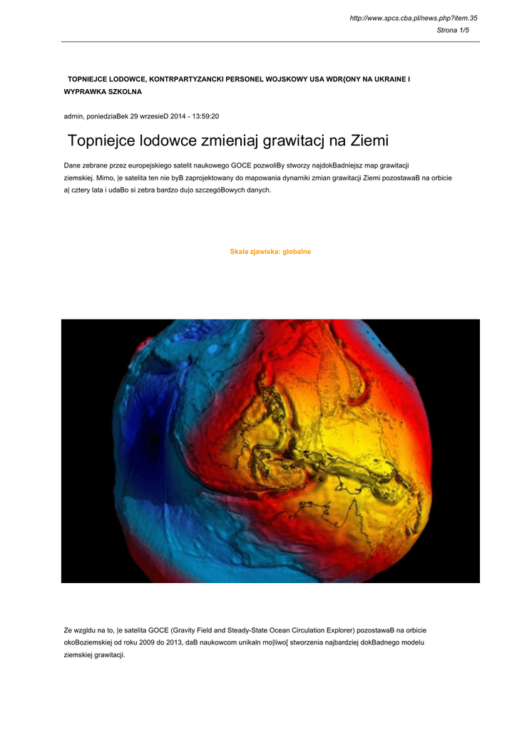 Dane zebrane przez europejskiego satelit naukowego GOCE pozwoliBy stworzy najdokBadniejsz map grawitacji