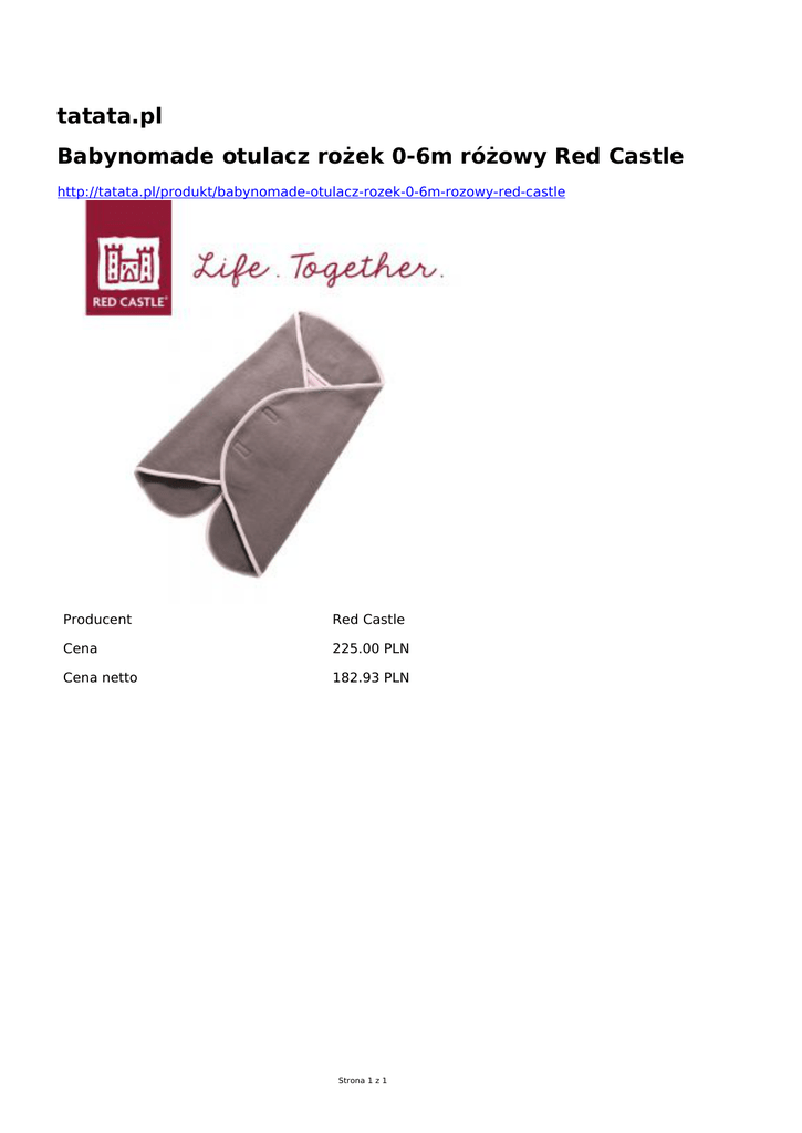 tatata.pl Babynomade otulacz rożek 0-6m różowy Red Castle http://tatata.pl/produkt/babynomade-otulacz-rozek-0-6m-rozowy-red-castle Producent Red Castle Cena 225.00 PLN Cena netto 182.93 PLN Strona 1 z 1