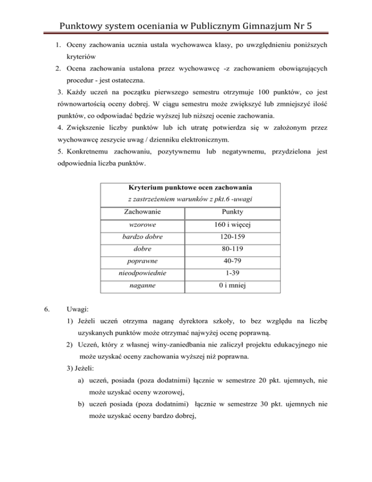 Kryteria oceny z zachowania - Publiczne Gimnazjum Nr 5 w