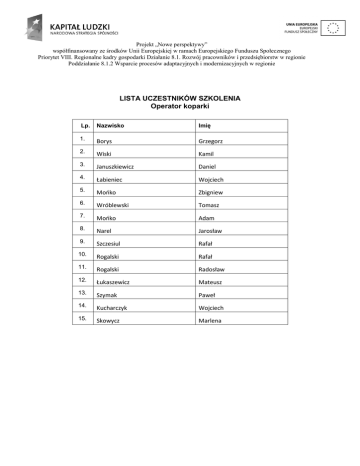 LISTA UCZESTNIKÓW SZKOLENIA Operator koparki