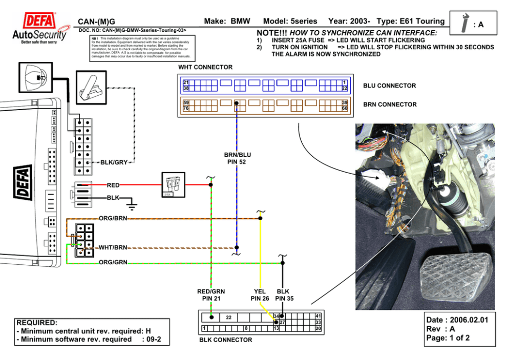 M a k e : B M W C A N -(M )G M o d e l: 5 s e r ie s Y e a r : 2 0 0 3 - T y p e : E 6 1 T o u r in g N O T E ! ! ! H O W T O S Y N C H R O N IZ E C A N IN T E R F A C E : D O C . N O : C A N -(M )G -B M W -5 s e r ie s -T o u r in g -0 3 > N B ! T h is in s fo r th e in s ta lla fro m m o d e l to in s ta lla tio n , b e m a n u fa c tu re r. d a m a g e s th a t ta tio m s D m lla tio n d ia g r a m m u s t o n . E q u ip m e n t d e liv e r e o d e l a n d fro m m a rk e t u r e to c h e c k c a r e fu lly E F A A .S is n o t lia b le a y o c c u r d u e to fa u lty n ly b e u s e d d w ith th e c to m a rk e t. B th e o r ig in a l to c o m p e n s o r in s u ffic ie a s a g u id e lin e a r v a r ie s c o n s id e r a b ly e fo r e s ta r tin g th e d ia g r a m fr o m th e c a r a te fo r p o s s ib le n t in s ta lla tio n m a n u a ls . 1 ) 2 ) IN S E R T 2 5 A F U S E = > L E D W IL L S T A R T F L IC K E R IN G T U R N O N IG N IT IO N = > L E D W IL L S T O P F L IC K E R IN G T H E A L A R M IS N O W S Y N C H R O N IZ E D : A W IT H IN 3 0 S E C O N D S W H T C O N N E C T O R 2 1 3 8 1 2 2 B L U C O N N E C T O R 5 9 7 6 3 9 B R N 6 0 C O N N E C T O R B R N /B L U P IN 5 2 B L K /G R Y R E D B L K 25A O R G /B R N W H T /B R N O R G /G R N R E D /G R N P IN 2 1 R E Q U IR E D : - M in im u m c e n tr a l u n it r e v . r e q u ir e d : H - M in im u m s o ftw a r e r e v . r e q u ir e d : 0 9 -2 Y E L P IN 2 6 3 4 2 2 1 B L K P IN 3 5 8 B L K C O N N E C T O R 1 3 2 7 4 1 3 3 2 0 D a te : 2 0 0 6 .0 2 .0 1 R e v : A P a g e : 1 o f 2 C A N -(M )G M a k e : B M W M o d e l: 5 s e r ie s Y e a r: 2 0 0 3 - T y p e : E 6 1 T o u r in g D O C . N O : C A N -(M )G -B M W -5 s e r ie s -T o u r in g -0 3 > : A UP L e v e l n r. 3 . D a te : 2 0 0 6 .0 2 .0 1 R e v : A P a g e : 2 o f 2