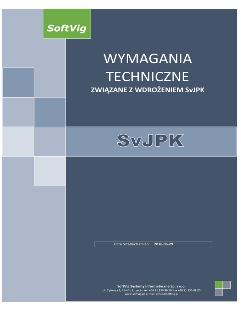SoftVig WYMAGANIA TECHNICZNE ZWIĄZANE Z WDROŻENIEM SvJPK Data ostatnich zmian: 2016-06-29 SoftVig Systemy Informatyczne Sp. z o.o. Ul. Cyfrowa 4, 71-441 Szczecin, tel. +48 91 350 89 20, fax +48 91 350 89 30 www.softvig.pl, e-mail: [email protected] WYMAGANIA TECHNICZNE » ZWIĄZANE Z WDROŻENIEM SvJPK » Architektura systemu SPIS TREŚCI 1 ARCHITEKTURA SYSTEMU ................................................................................................................................................... 2 1.1 Część kliencka ............................................................................................................................................................. 2 1.1.1 Dostęp terminalowy .......................................................................................................................................... 2 1.2 Część serwerowa ........................................................................................................................................................ 2 2 WYMAGANIA TECHNICZNE SYSTEMU ................................................................................................................................. 2 2.1 Serwer bazodanowy ................................................................................................................................................... 2 2.2 Serwer aplikacyjny/IIS ................................................................................................................................................. 2 2.3 Stacje robocze pracujące z programem klienckim systemu........................................................................................ 3 3 DOSTĘP SERWISOWY .......................................................................................................................................................... 3 SoftVig sp. z o.o. ul. Cyfrowa 4, 71-441 Szczecin, tel. +48 91 350 89 20, fax +48 91 350 89 30, www.softvig.pl, e-mail: [email protected] Strona 1 z 3 WYMAGANIA TECHNICZNE » ZWIĄZANE Z WDROŻENIEM SvJPK » Architektura systemu 1 ARCHITEKTURA SYSTEMU Celem niniejszego dokumentu jest przedstawienie technicznej koncepcji działania modułu SvJPK w konfiguracji do pracy sieci lokalnej oraz wymagań technicznych. Moduł SvJPK, pomimo że tworzy rozszerzenie systemu DMS AutoStacja3 został przygotowany w nowszej technologii, przez co rozszerza wymagania względem wspólnej instalacji z DMS AutoStacja3. Dotyczy to wymagań zarówno od strony serwera jak i stacji roboczej. 1.1 CZĘŚĆ KLIENCKA Na stacjach roboczych, na których będzie uruchamiany SvJPK instalowany jest program służący do prezentacji danych i operacji na danych. Ze względu na technologie, w której pracuje wymagana jest instalacja na stacji roboczej oprogramowania Microsoft.NET Framework 4.6. Program nie wymaga komponentów związanych z dostępem do bazy danych SQL, gdyż dostęp do danych jest realizowany poprzez usługę WebService na serwerze aplikacyjnym (IIS). Stacja robocza musi mieć dostęp do serwera aplikacyjnego poprzez standardowy port 80 (http). 1.1.1 DOSTĘP TERMINALOWY W przypadku realizacji dostępu dla pracowników ASO poprzez serwer terminali, wymagania środowiskowe dla serwera terminali są analogiczne jak dla stacji roboczej (poniżej). 1.2 CZĘŚĆ SERWEROWA W części serwerowej SvJPK składa się z bazy danych na serwerze bazodanowym (Microsoft SQL Server) oraz z serwera aplikacyjnego (Microsoft IIS). W konfiguracji dla jednego salonu tj. bez dostępów zewnętrznych oba serwery mogą być umieszone albo na dwóch fizycznych maszynach albo na jednym fizycznym serwerze. Decyzja o ilości serwerów zależna jest od wymagań wydajnościowych oraz ilości użytkowników. W przypadku instalacji roli IIS na serwerze SQL (role współdzielone) niezbędne jest zarezerwowanie/wydzielenie przestrzeni pamięci RAM dla tej usługi. 2 2.1 WYMAGANIA TECHNICZNE SYSTEMU SERWER BAZODANOWY Wymagana wersja silnika bazy SQL to minimum 2008 standard. Serwer musi spełniać wymagania AS3. Zasoby dyskowe dla bazy danych JPK: 10GB (początkowa wielkość bazy to 1GB). 2.2 SERWER APLIKACYJNY/IIS Aspekt Opis System operacyjny Windows Server 2012R2 lub 2008R2 – Standard Edition (preferowana wersja 2012 R2) Procesor Xeon w technologii E3 SoftVig sp. z o.o. ul. Cyfrowa 4, 71-441 Szczecin, tel. +48 91 350 89 20, fax +48 91 350 89 30, www.softvig.pl, e-mail: [email protected] Strona 2 z 3 WYMAGANIA TECHNICZNE » ZWIĄZANE Z WDROŻENIEM SvJPK » Dostęp serwisowy RAM 8 GB lub więcej. Dysk twardy Pozostałe Pojemości 1 TB. Macierz RAID 10 lub RAID 1. Dyski SAS ( NL SAS, SAS 10/15k). 100 GB na OS. 5GB dla serwisu IIS. Pozostała część na backupy. Brak Uwaga : Możliwa jest realizacja serwera IIS na serwerze bazodanowym, jednak sugerowanym rozwiązaniem jest przygotowanie osobnych serwerów. 2.3 STACJE ROBOCZE PRACUJĄCE Z PROGRAMEM KLIENCKIM SYSTEMU Aspekt Opis System operacyjny Windows 7 Prof. nowsze Procesor Intel Core2Duo, I3, I5, I7 bądź odpowiedniki AMD RAM 4 GB lub więcej z uwzględnieniem wszystkich programów wykorzystywanych równolegle. Zajętość dyskowa ok. 300 MB wolnego miejsca na dysku Oprogramowanie Microsoft .NET Framework Monitor min. rozdzielczość 1280x1024 - zalecamy monitory 17” lub wyżej Pozostałe 3 Program antywirusowy wraz z aktualną bazą informacji o wirusach. Silnie rekomendujemy posiadanie zasilacza awaryjnego przy stacji roboczych. Dostęp do serwera IIS. DOSTĘP SERWISOWY Firma SoftVig może sprawować opiekę serwisową nad systemem SvJPK poprzez dostęp zdalny. Aby było to możliwe ASO musi udostępnić dostęp serwisowy do serwerów wchodzących w skład systemu. Wymagane jest udostępnienie w portu 80 (http) serwera IIS, poprzez łącze serwisowe VPN. SoftVig sp. z o.o. ul. Cyfrowa 4, 71-441 Szczecin, tel. +48 91 350 89 20, fax +48 91 350 89 30, www.softvig.pl, e-mail: [email protected] Strona 3 z 3