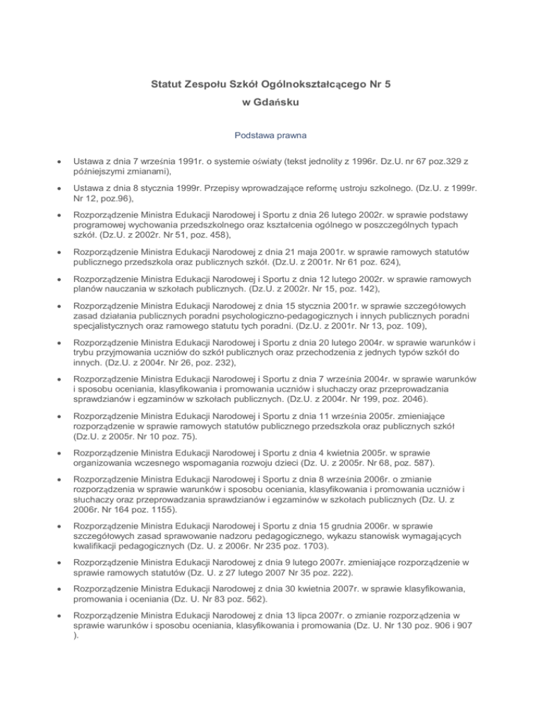 Statut Zespołu Szkół Ogólnokształcącego Nr 5 w Gdańsku