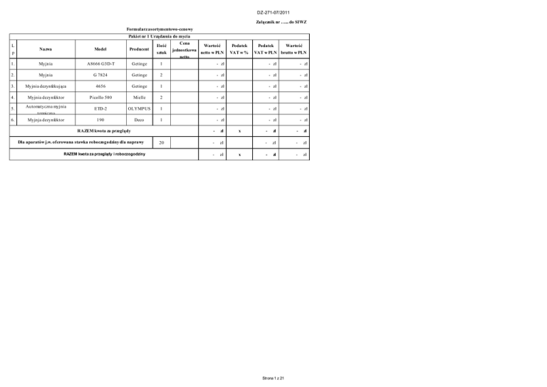 DZ-271-07/2011 L p Nazwa Model Producent Ilość sztuk Cena