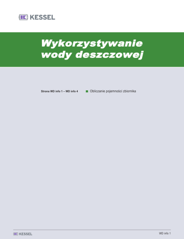 Wykorzystywanie wody deszczowej Strona WD info 1 – WD info 4 Obliczanie pojemności zbiornika WD info 1 Obliczenie pojemności zbiorników Wymiarowanie zbiorników wody deszczowej w oparciu o normę DIN 1989-1:2002-04 Wymiarowanie zbiorników wody deszczowej zależy od dwóch istotnych czynników: Od ilości napływającej wody opadowej (powierzchnia odwadniana z wody deszczowej, współczynniki zmniejszające i lokalna ilość opadów) Od zapotrzebowania na wodę roboczą (rodzaj i liczba punktów czerpalnych) Pojemność zbiorników powinna ze wględów ekonomicznych być optymalna w odniesieniu do ilości napływającej wody opadowej. Dostępna ilość wody opadowej powinna być wykorzystana, co pozwoliłoby na ograniczenie do minimum zasilania wodą pitną. Opad roczny w l/m2 (hN ) Do ustalenia ilości napływającej wody opadowej potrzebne są roczne wartości opadów w mm lub w l/m2. Odpowiednie wartości opadów dla danego regionu można znaleźć na mapie opadów Instytutu Meteorologii i Gospodarki Wodnej. Współczynnik wydajności według DIN 1989-1: 2002-04 Współczynnik wydajności uwzględnia różnicę pomiędzy ilością opadów i rzeczywistą odpływającą ilością wody deszczowej przy uwzględnieniu położenia, nachylenia, wypoziomowania i cech powierzchni odwadnianej (wartości bazujące na praktycznym doświadczeniu). Rodzaj powierzchni nachylony dach twardy * Współczynnik wydajności e 0,90 dach płaski bez żwiru 0,80 dach płaski żwirowany 0,60 dach zielony w systemie intensywnym 0,30 dach zielony w systemie ekstensywnym 0,50 powierzchnia brukowa 0,50 powierzchnia asfaltowa 0,80 * Odchylenia w zależności od chłonności i chropowatości Ilość wody deszczowej Obliczenie teoretycznej ilości wody deszczowej napływającej do zbiornika: Powierzchnie odwadniane w m2 (AA ) Wielkość odwadnianej powierzchni dachowej odpowiada powierzchni terenu zadaszonego, zajmowanego przez budynek (łącznie z dachem wystającym). Tarasy, balkony, powierzchnie podwórek itp. traktuje się jak powierzchnię terenu, na którą spada deszcz. Ilość wody deszczowej (l/rok) = ER = AA x e x hN x η AA: odwadniana powierzchnia e: współczynnik wydajności hN: wielkość opadów η : hydrauliczna wydajność filtra Wydajność filtra ( η ) W przypadku stosowania filtrów pionów kanalizacyjnych i filtrów drobnych wirowych lub filtrów wlotowych należy uwzględnić odpowiednie dane uzyskane od producenta odnośnie użytkowej objętości strumienia przepływu wody deszczowej. Program obliczeniowy KESSEL Cenną pomoc przy projektowaniu i obliczaniu wymiarów oferuje nasz program KAP-RAIN. Woda deszczowa zamiast wody pitnej Praktyczne wykorzystanie wody deszczowej Zainteresowanie zagospodarowaniem wody deszczowej i wykorzystaniem jej w gospodarstwie domowym w ostatnich czasach gwałtownie wzrasta. Na proces ten wpływa z jednej strony coraz bardziej powszechna orientacja proekologiczna, a z drugiej stale rosnąca cena za 1 m3 wody. Należy oczekiwać coraz wyższych cen wynikających choćby ze wzrostu nakładów związanych z jej uzdatnianiem. Około 50% wody pitnej używanych w gospodarstwach domowych można zastąpić wodą deszczową. Jest to oszczędność nie tylko dla portfela. Wykorzystywanie wody deszczowej ma wiele innych zalet. Woda deszczowa jest bardziej „miękka” w porównaniu z „twardą” wodą wodociągową. Przy używaniu jej do sprzątania i prania oszczędza się środki czystości. Ponadto wszystkie zawory i urządzenia przepłukiwane wodą deszczową wykazują mniejsze osadzanie się kamienia, dzięki czemu rzadziej się psują. Odpadają więc wysokie koszty napraw i wymiany elementów. Brak zastrzeżeń zdrowotnych Użycie wody deszczowej nie budzi zastrzeżeń zdrowotnych, nadaje się ona szczególnie do prania i sprzątania. Nadszedł więc czas na oszczędzanie. Dzięki przemyślanemu od strony technicznej urządzeniu KESSEL można teraz wykorzystywać wodę deszczową w wygodny sposób, bez konieczności ponoszenia wysokich nakładów na prace konserwacyjne. WD info 2 Wykorzystując wodę deszczową nie tylko zapobiega się marnotrawstwu, ale także częściowo odciąża się system kanalizacyjny poprzez retencjonowanie wody. Szczególnie ważne jest to w przypadku przepełnienia kanału, co ma miejsce podczas ulewnych deszczy lub w sytuacji podłączania do starych kolektorów dodatkowych przykanalików z nowych osiedli. Obliczenie pojemności zbiorników Przykład obliczania wielkości urządzenia do wykorzystywania wody deszczowej Dom jednorodzinny z dachem pochyłym (dachówki glazurowane, powierzchnia zajmowana przez dach 170 m2) w okolicach Hamburga Gospodarstwo domowe 4-osobowe (2 osoby dorosłe, 2 dzieci) Powierzchnia ogrodu: 300 m 2, z tego100 m 2 ogród użytkowy Woda deszczowa jest używana do nawadniania ogrodu, spłukiwania toalety, do prania oraz do czyszczenia. 1. Krok Wzór Obliczenie napływającej wody deszczowej: Powierzchnia odwadniana x współczynnik spływu* x wysokość opadów** x skuteczność filtra*** * patrz tabela na stronie WD info 2 ** średni opad roczny w mm wg IMiGW *** Skuteczność filtra uwzględnia utraty w filtrze przed zbiornikiem wody deszczowej. Przy regularnej konserwacji filtra wody deszczowej KESSEL System 400 można osiągnąć wartość 96% (=0,96)! Wynik 2. Krok 170 m 2 x 0,9 x 750 litr m 2 rok x 0,96 = 110.160 litrów / rok Obliczenie zapotrzebowania na wodę roboczą: patrz formularz doboru! 3. Krok Wnioski: 1. Rocznie napływa większa ilość wody deszczowej, niż jest potrzebna (110.160 litrów > 98.560) 2. Obliczona pojemność zbiornika wynosi 5.671 litrów. 3. Optymalna wielkość zbiornika wody deszczowej wynosi więc 6.000 litrów. WD info 3 Obliczenie pojemności zbiornika Formularz doboru dla zbiorników wody deszczowej w oparciu o normę DIN 1989-1: 2002-12 Sporządził/a: ..................................................................................................................
