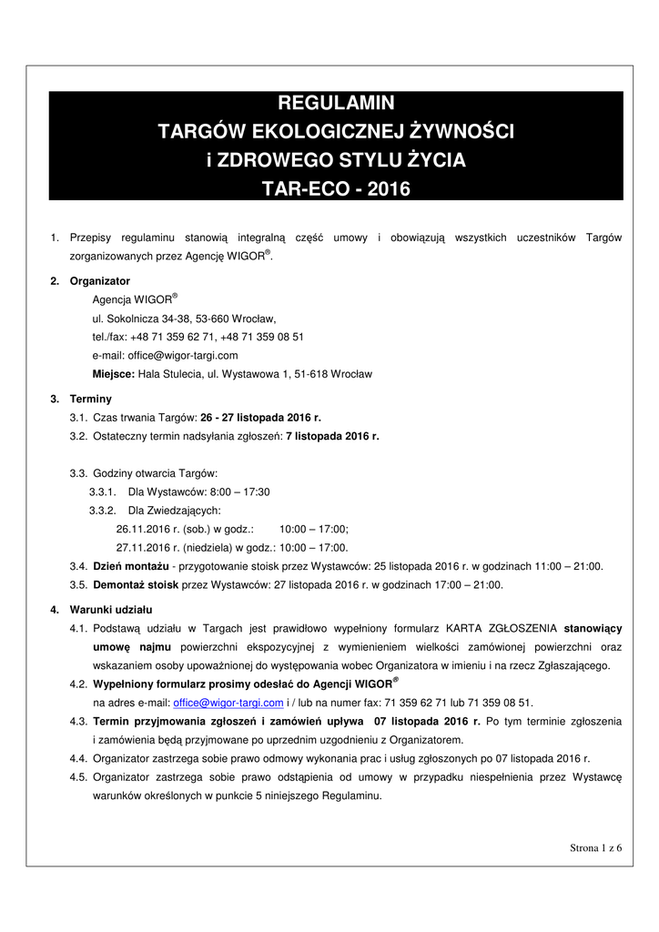 REGULAMIN TARGÓW EKOLOGICZNEJ - Wigor