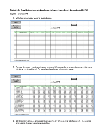 Zadanie 6. Przykład zastosowania arkusza kalkulacyjnego Excel do analizy ABC/XYZ.